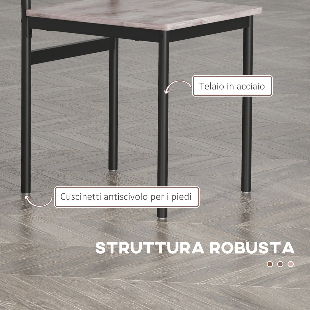 - STRUTTURA SOLIDA: Questo set tavolo e sedie è realizzato con una struttura in metallo per offrirti una costruzione robusta, mentre il piano del tavolo da cucina e della seduta sono composti in MDF impiallacciato per consentire una manutenzione ridotta e una facile pulizia. I piedini proteggono il pavimento da eventuali danni