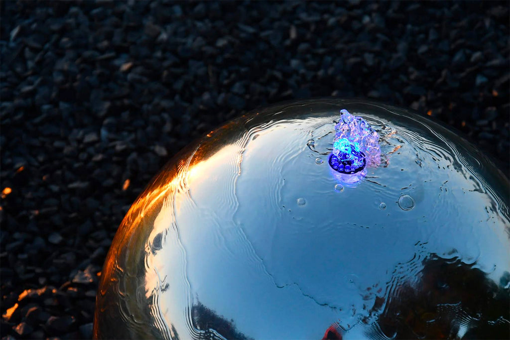Sfera Cascata Artificiale da Giardino con LED Ø80 cm in Acciaio Inox con Pompa