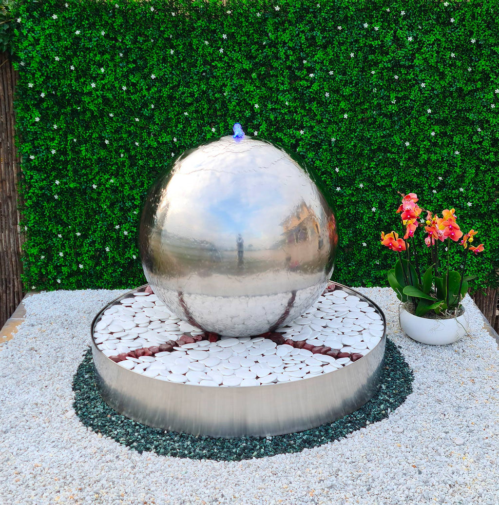 La Sfera in Acciaio è l'elemento perfetto per aggiungere stile e luminosità a qualsiasi ambiente. Con il suo design elegante, la pompa di ricircolo integrata e l'illuminazione a LED, si adatta perfettamente a una vasta gamma di contesti, sia interni che esterni. Offre un'esperienza rilassante con suoni dolci e un'atmosfera unica e raffinata.