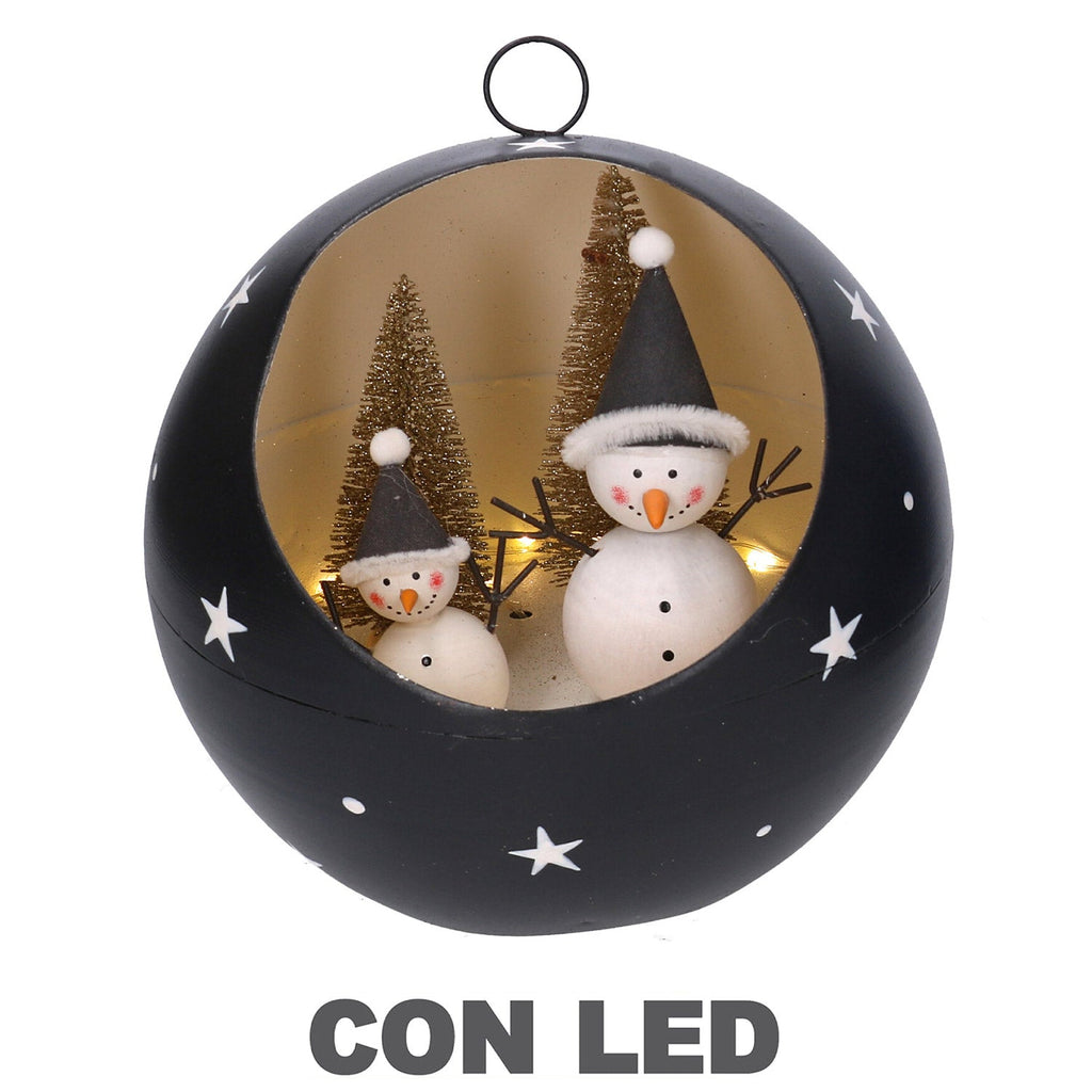 Sfera Natalizia in Metallo con Led nero cm Ø22xh22