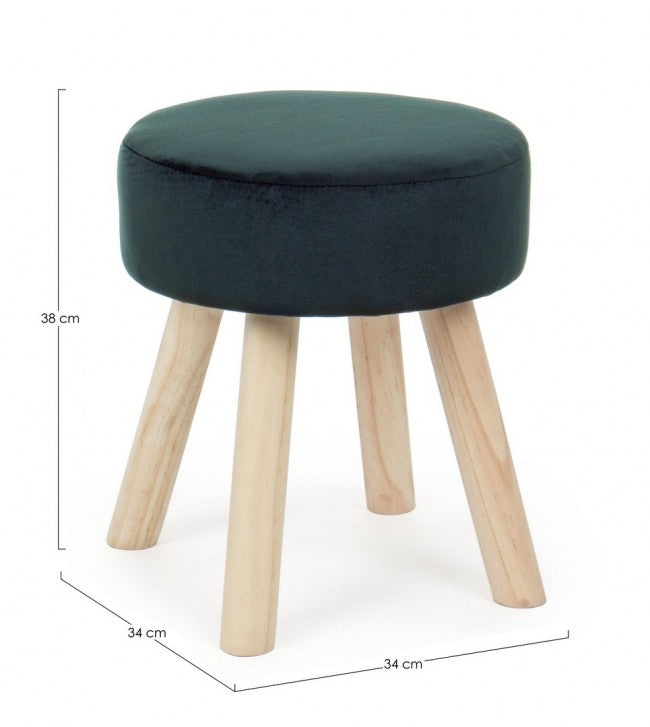 Lo sgabello presenta una struttura in legno di pino e MDF con verniciatura a base di nitrocellulosa per una finitura resistente e durevole. Il rivestimento è realizzato in poliestere con effetto velluto, aggiungendo comfort e un tocco di eleganza. Questo sgabello è pensato per essere un elemento decorativo e funzionale in vari ambienti della casa, offrendo una seduta comoda e uno stile raffinato.
