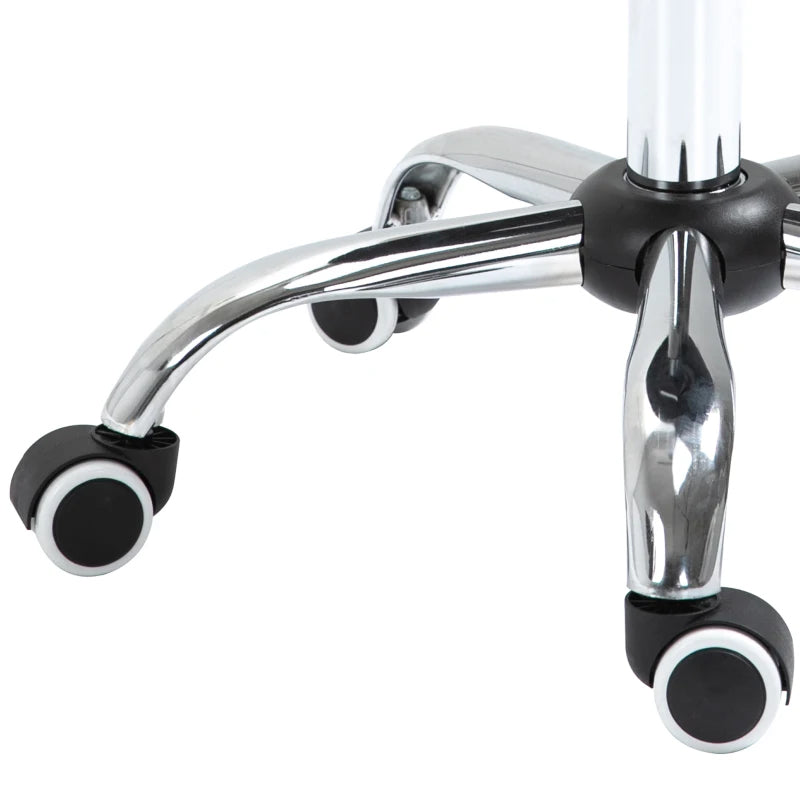 Sgabello con cinque ruote piroettanti e seduta a sella, che si abbina facilmente in qualsiasi parrucchiere, salone estetico, o negozio di tatuaggi.