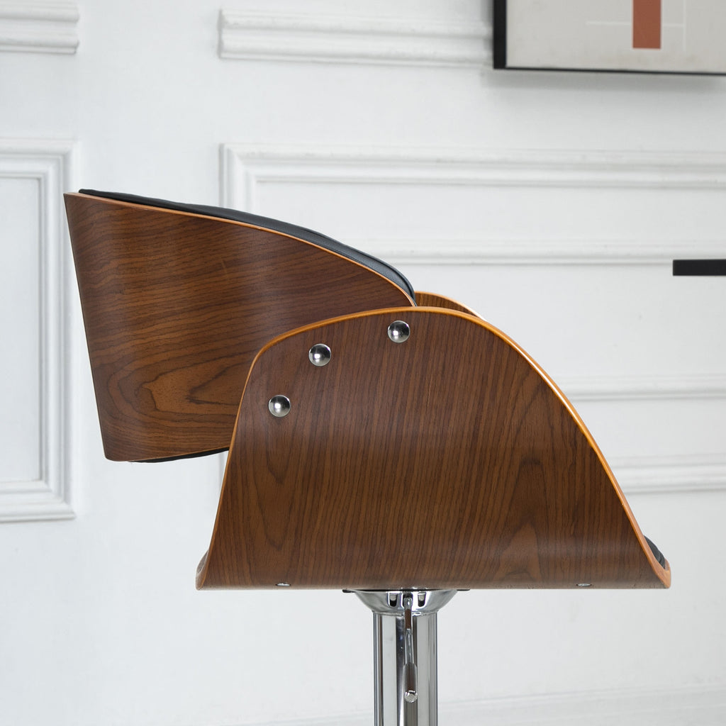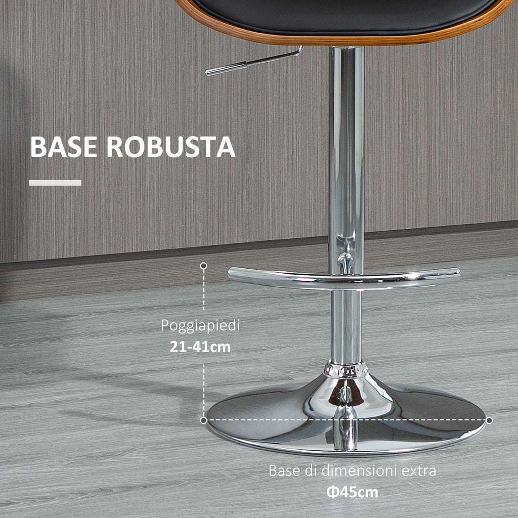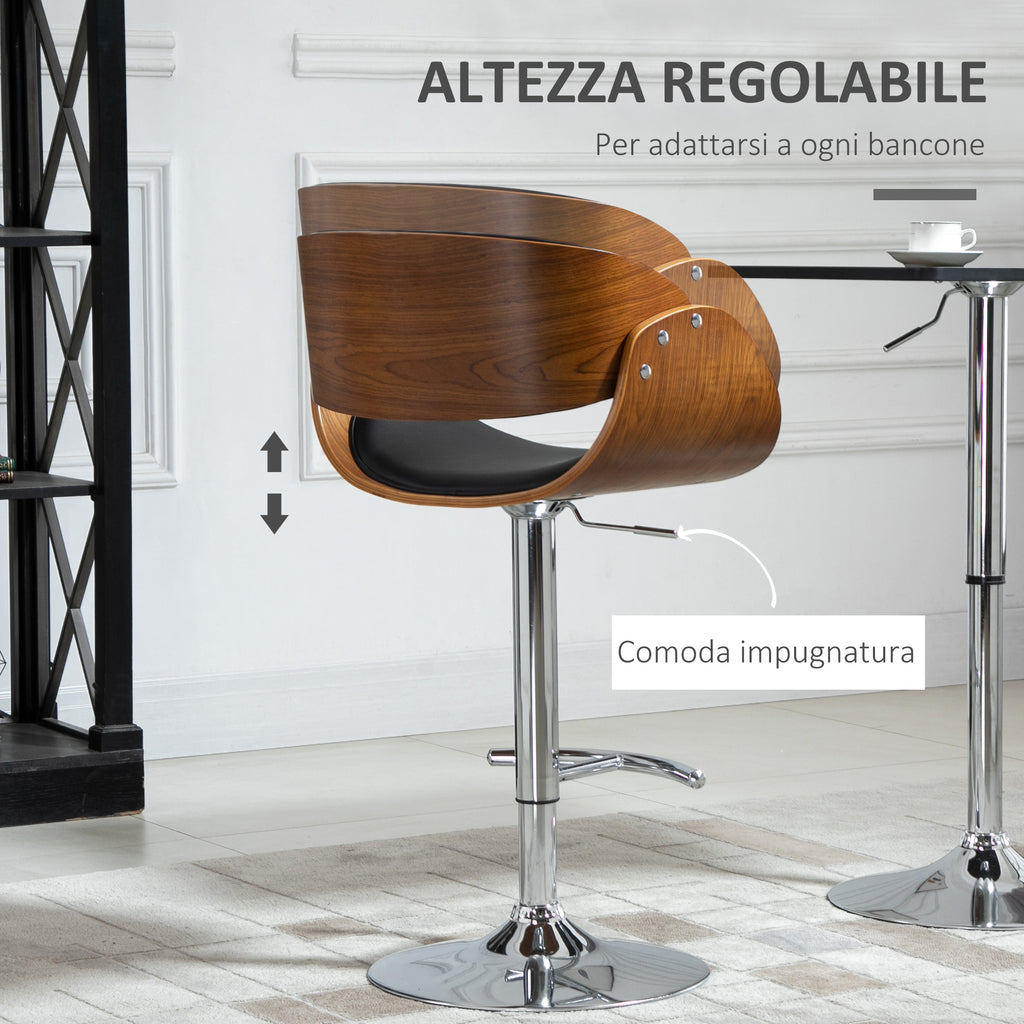 Sgabello Bar 58x54x92-112 cm Seduta Imbottita Nero e Noce