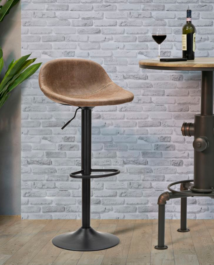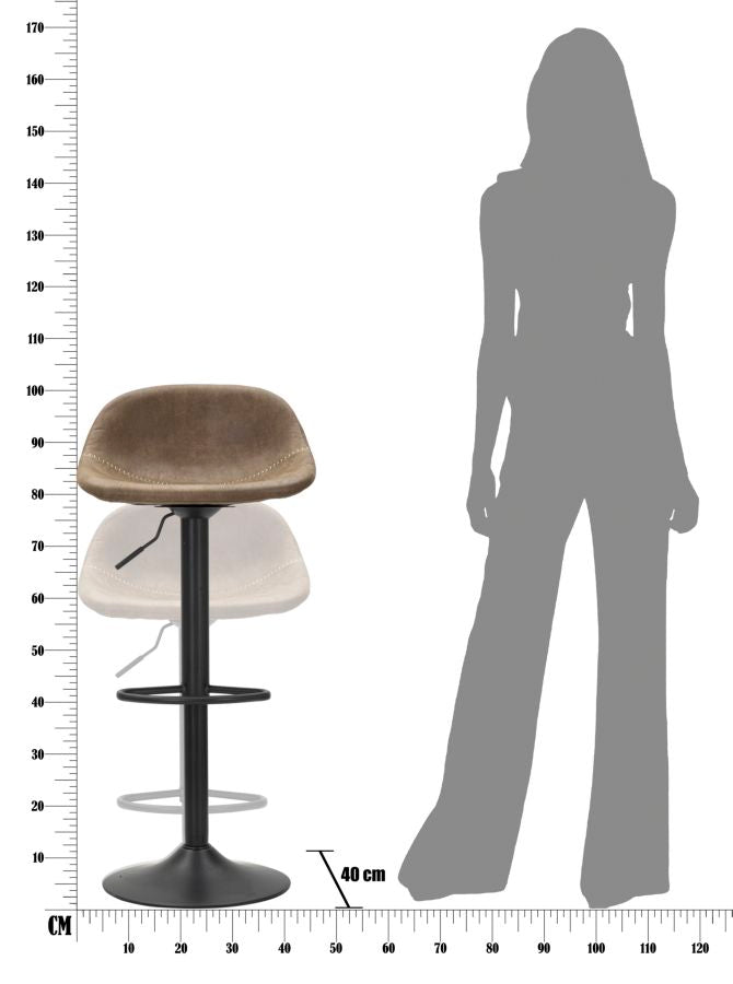 Sgabello Berlin 46x40x80-102 Altezza Seduta 61-82 cm in Ferro e Spugna e PU Marrone e Grigio