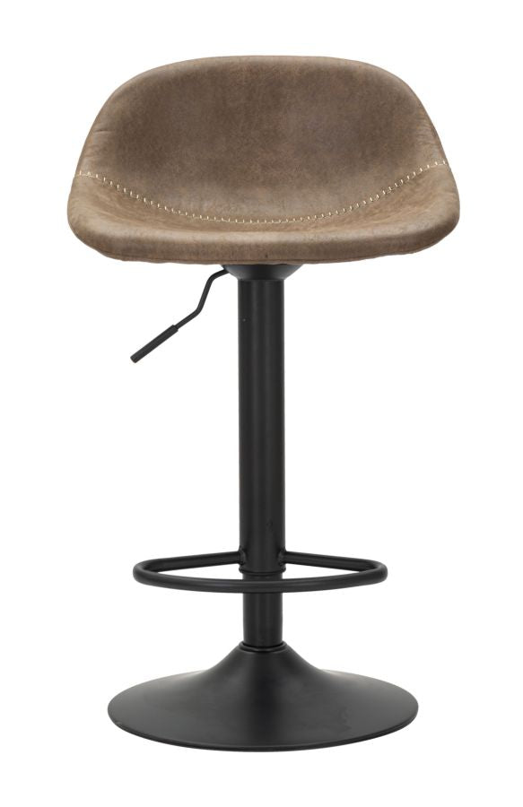 Sgabello in ecopelle e metallo nero regolabile in altezza in stile industriale dal design semplice ma deciso adatto ad ogni tipo di arredo.