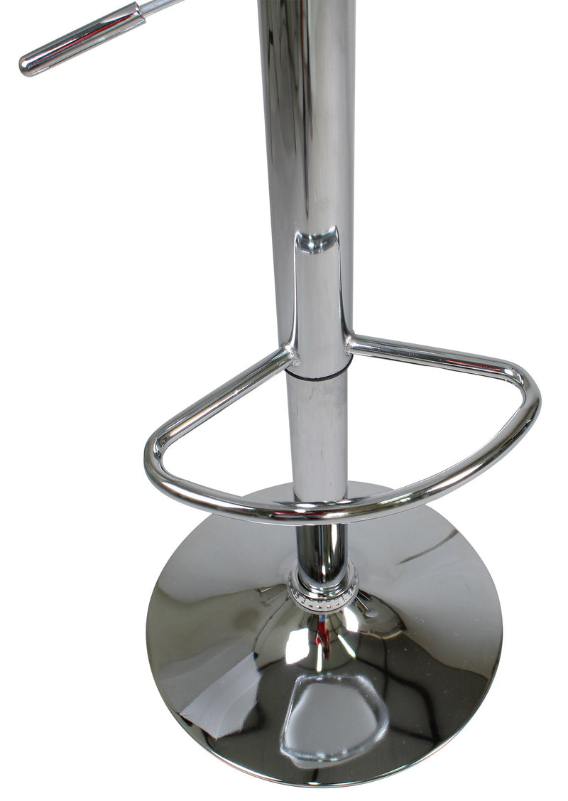 Sgabello moderno comodo e moderno con seduta in Similpelle e schienale in polipropilene, base in acciaio regolabile in altezza con comodissima pedana poggiapiedi.