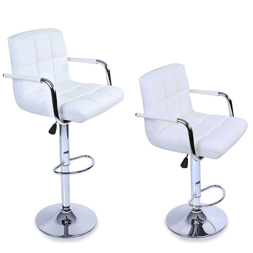 Sgabello con Braccioli Alzata a Gas e Seduta Girevole in Similpelle Vandi Bianco