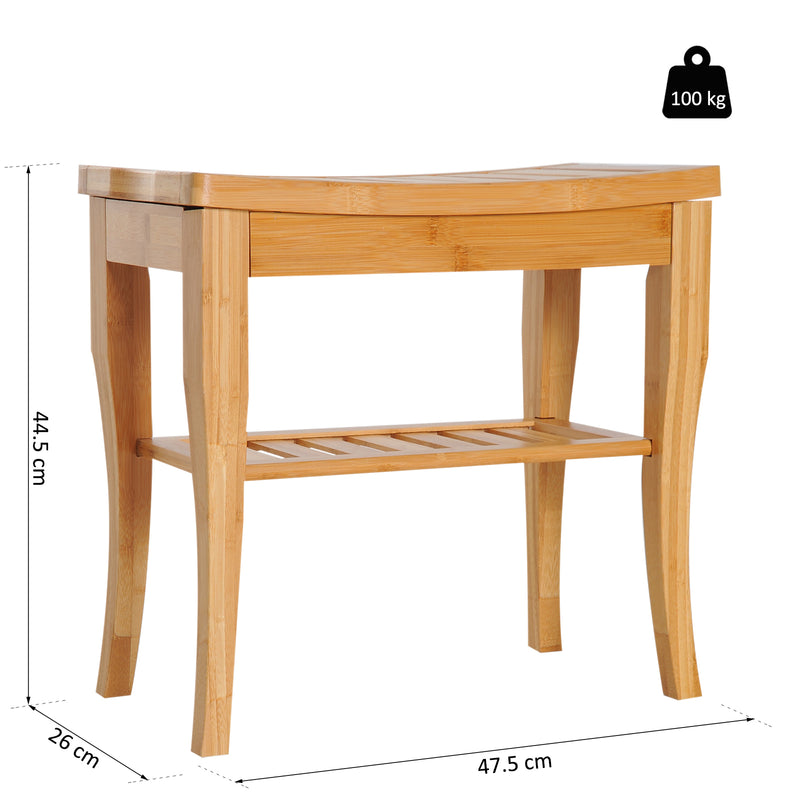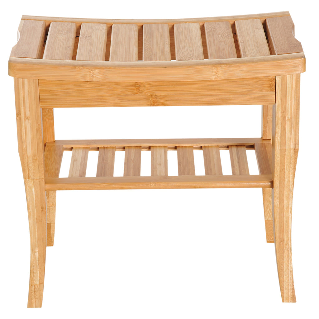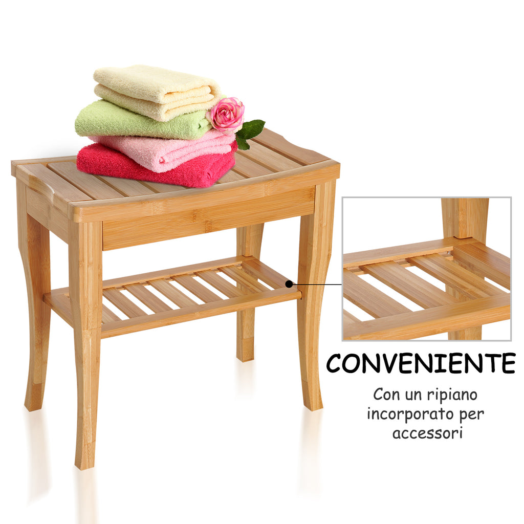 Sgabello con Ripiano Portaoggetti in Bambù Naturale