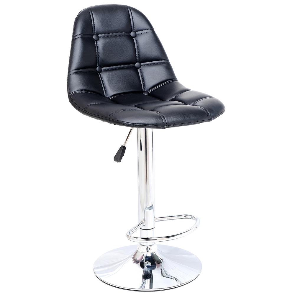 Sgabello Button con seduta girevole e alzata a gas in similpelle nero da bar.