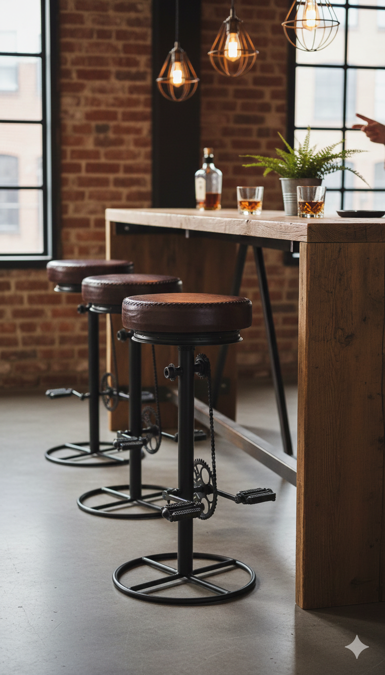Sgabello da Bar H80 cm in Acciaio Seduta in Vera Pelle Cycle Nero