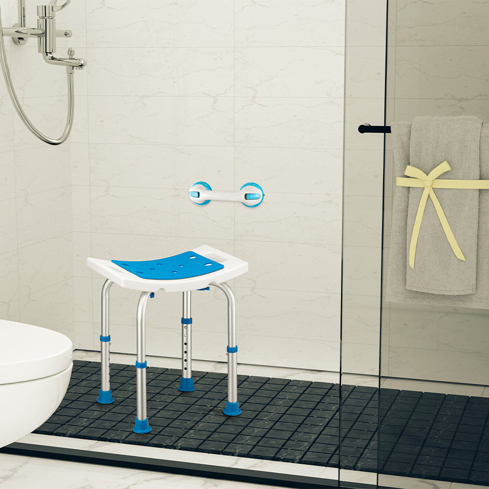 Sgabello da Doccia Antiscivolo + Maniglia Ausiliare Sedia Bagno Altezza Regolabile