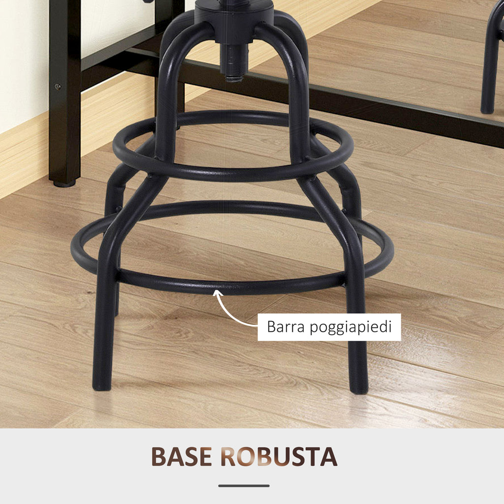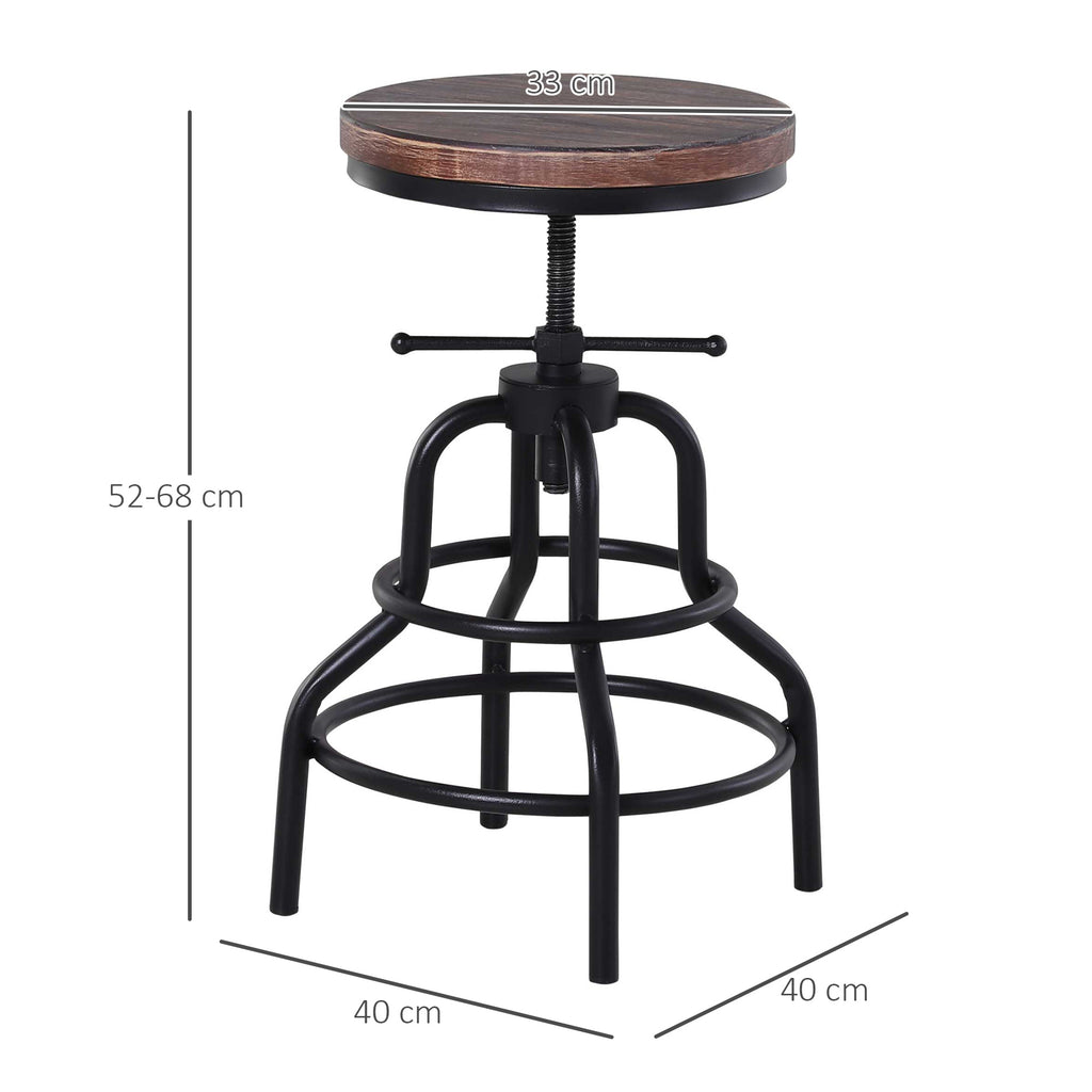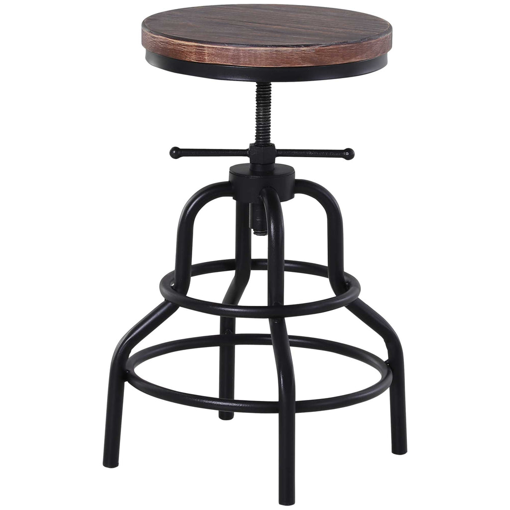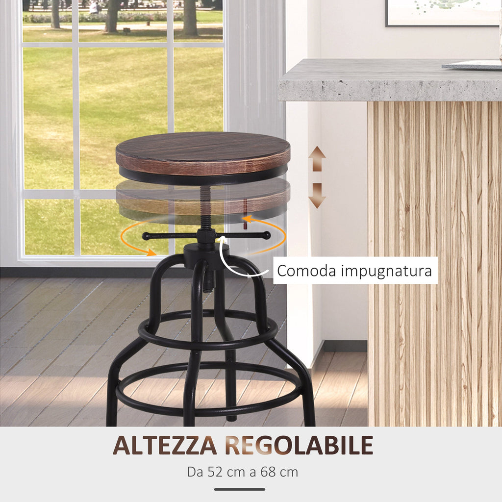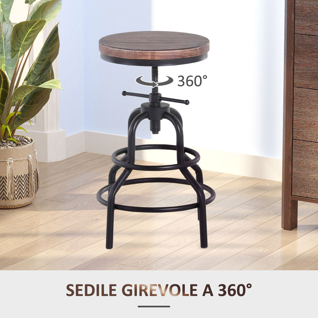 Sgabello Girevole Regolabile in Metallo e Legno di Pino Nero e Marrone