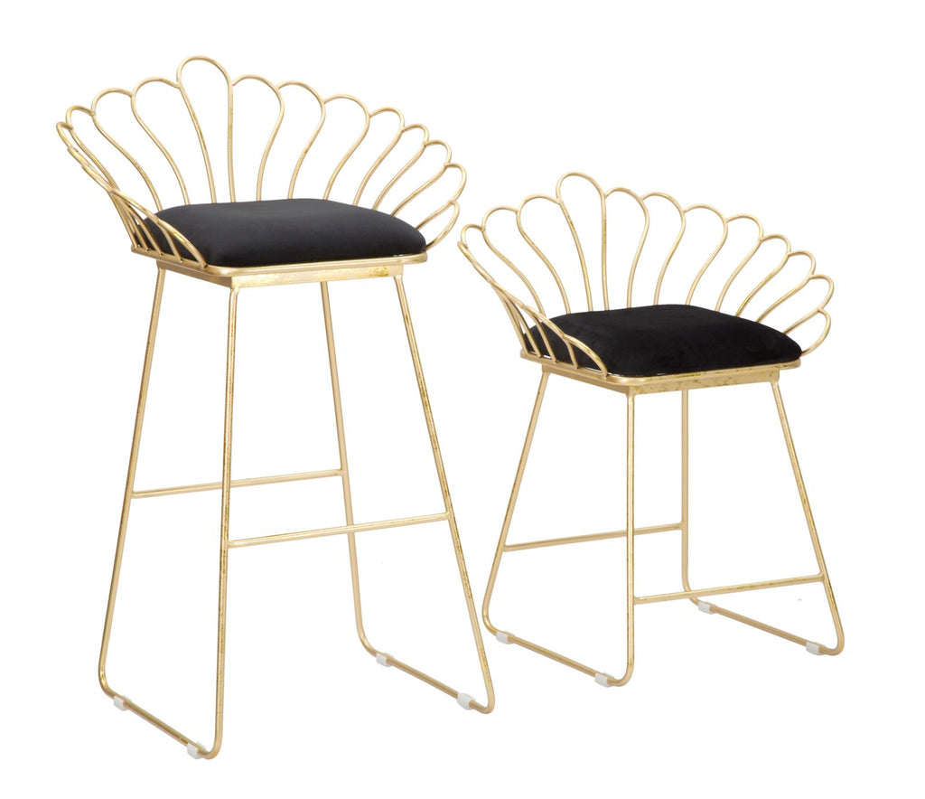 Sgabello Glam Flower Nero 57x52x94-56x48x72,50 cm in Ferro e Poliestere e Spugna Nero e Oro