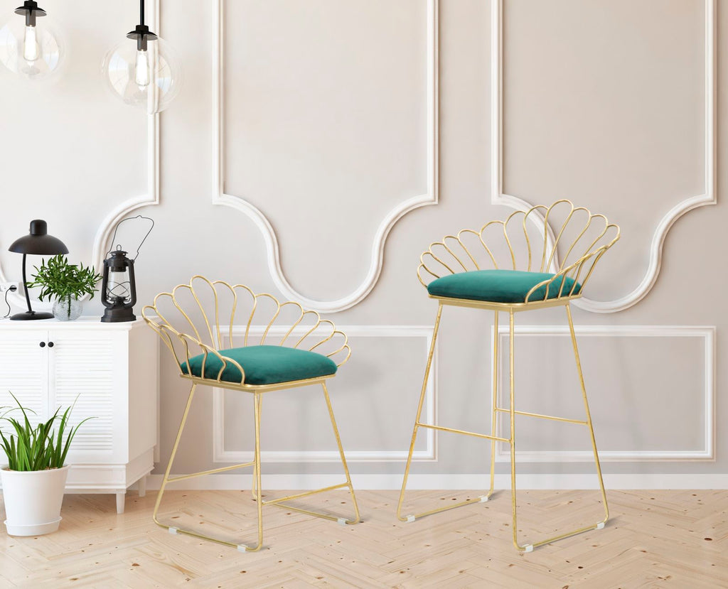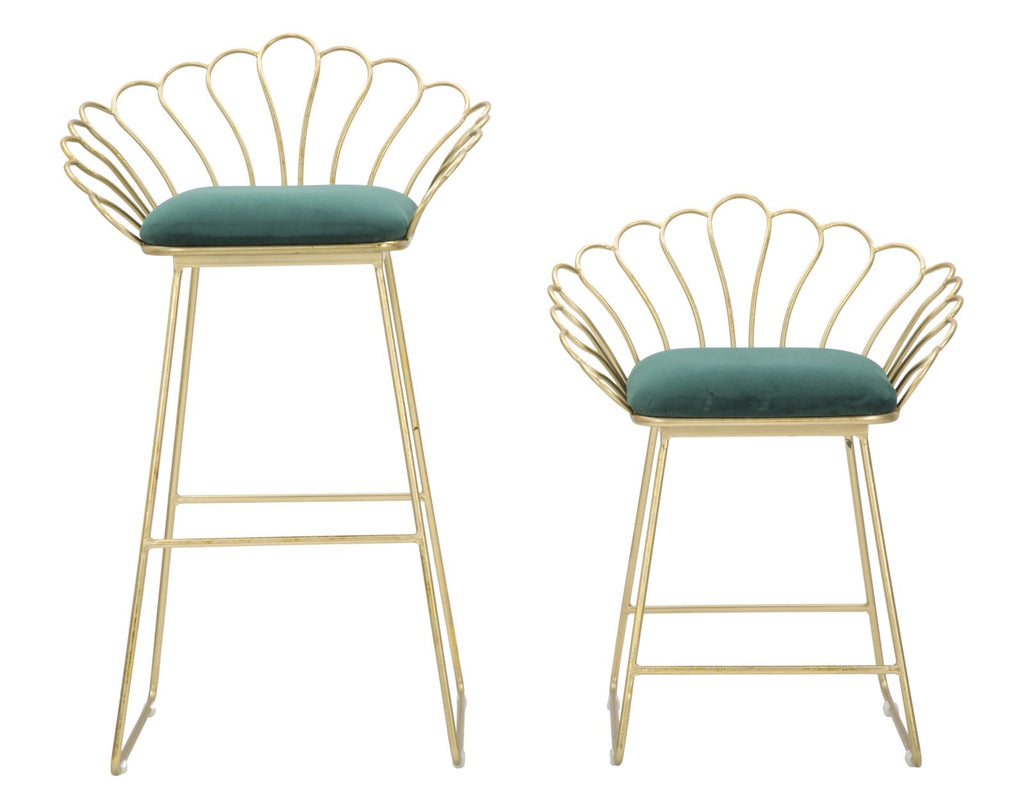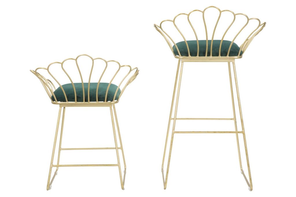 Sgabello Glam Flower Rosa Coppia 57x52x94-56x48x72,50 cm in Ferro Poliestere e Spugna Verde e Oro