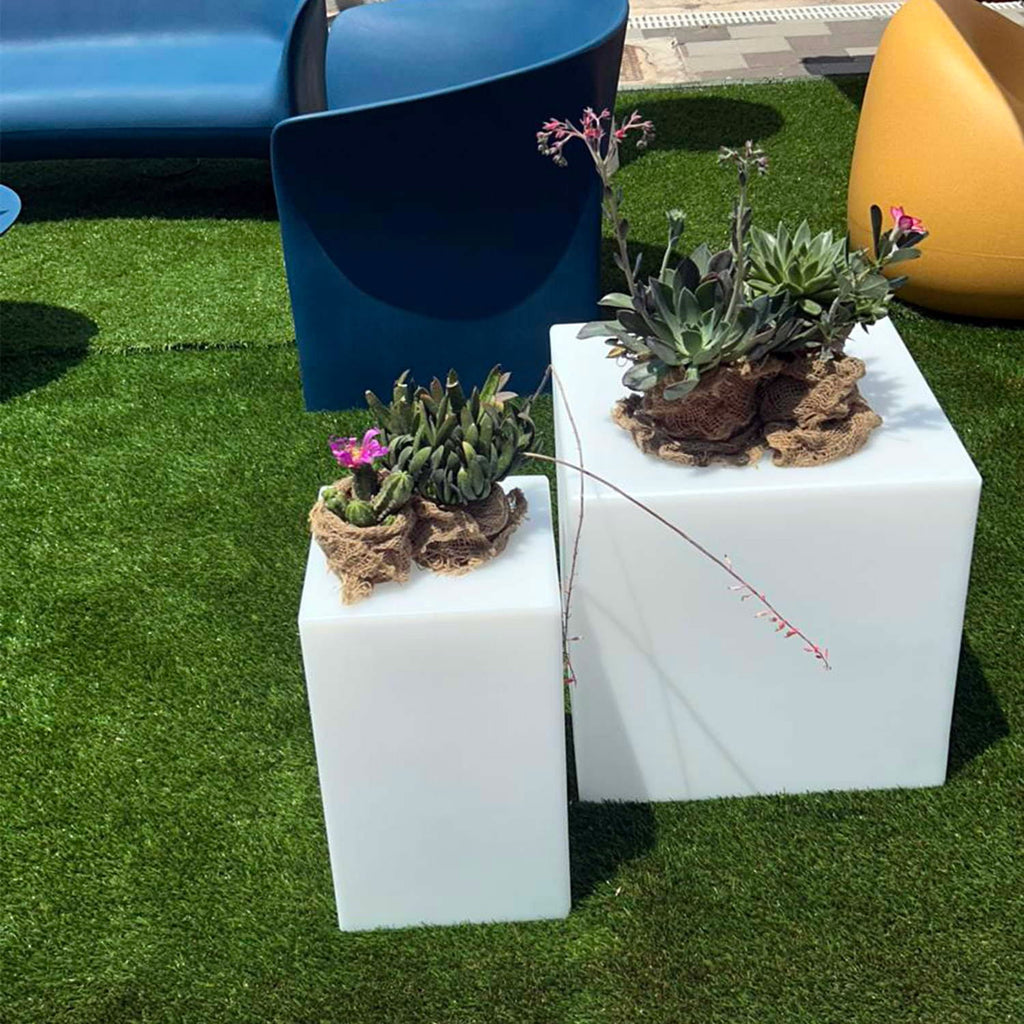 Sgabello Luminoso Solare da Giardino Autoricaricabile 29x29x48 cm in Polietilene Sined Par Bianco