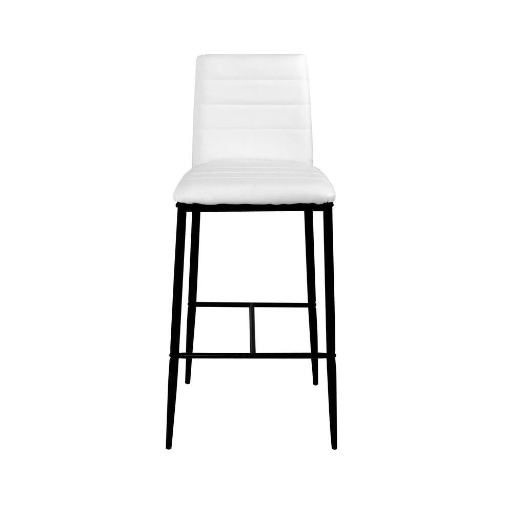 Sgabello moderno e minimal, ha delle gambe longilinee in resistente metallo nero. La seduta, in armonioso contrasto, è imbottita in ecopelle bianca. Questo effetto optical esalta nella sua totalità lo sgabello. Comodo, versatile e moderno, perfetto in living moderni e minimal.