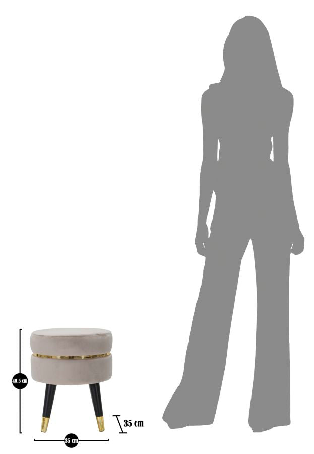 Sgabello Paris Ø35x40,5 cm in Legno Spugna Metallo e Poliestere Grigio Nero e Oro