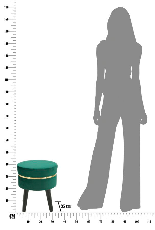 Sgabello Paris Verde Ø35x40,5 cm Legno Spugna e Velluto Sintetico Verde e Oro e Nero