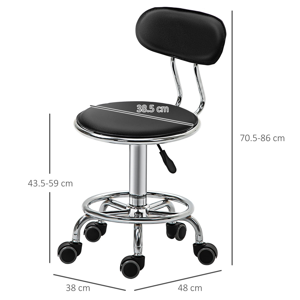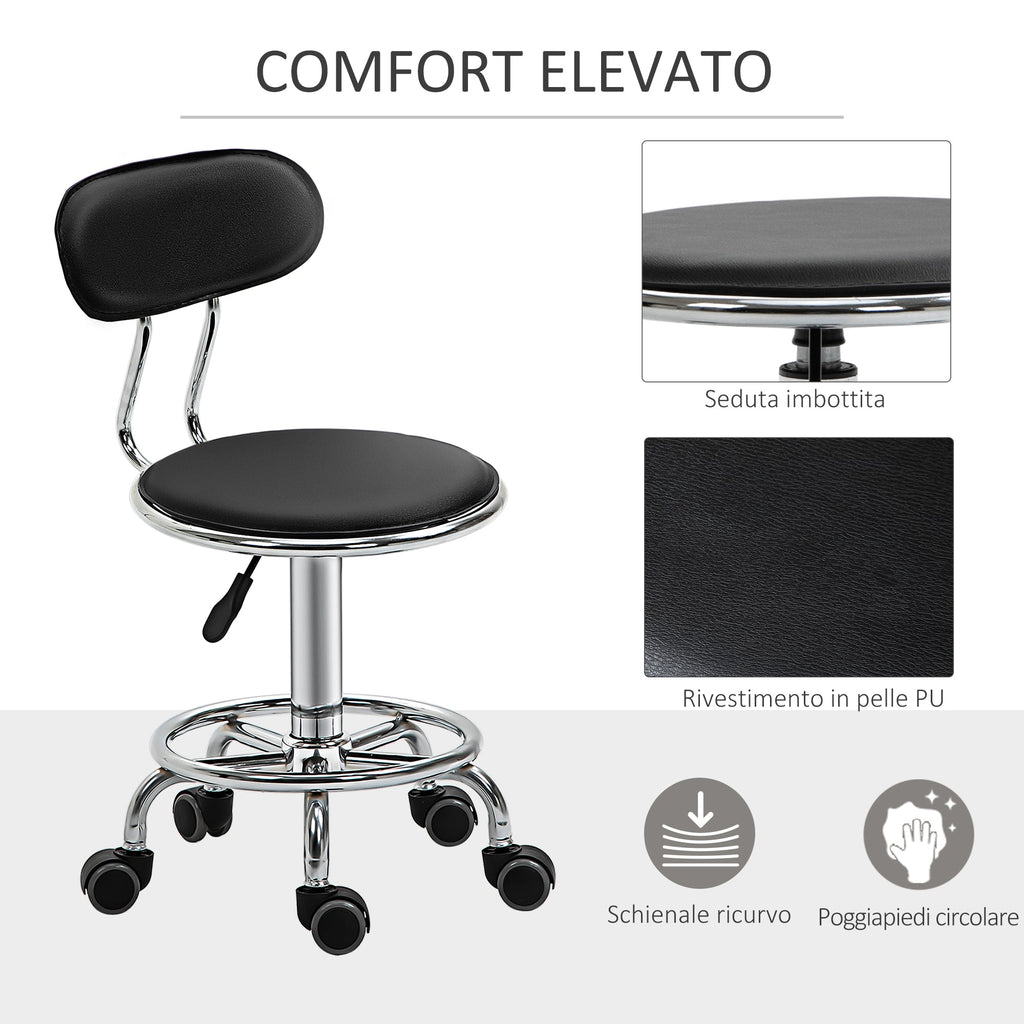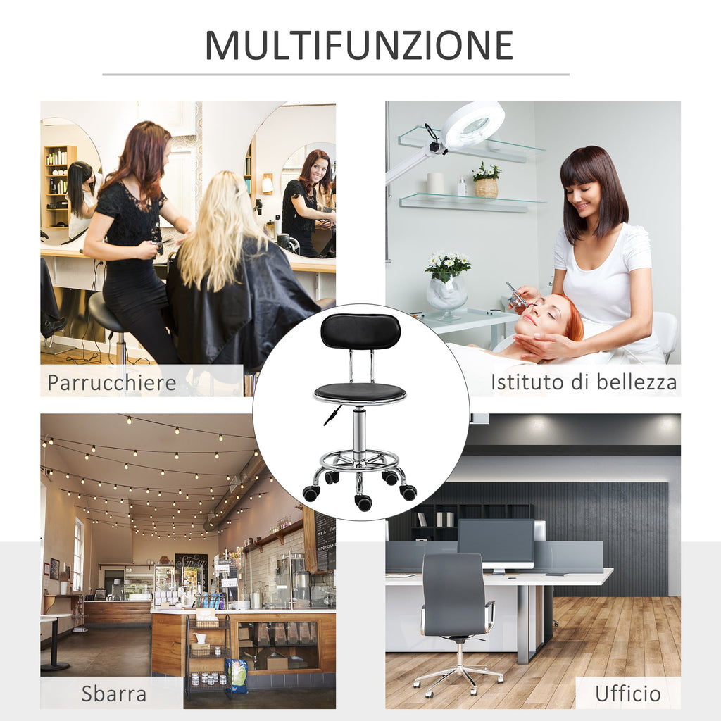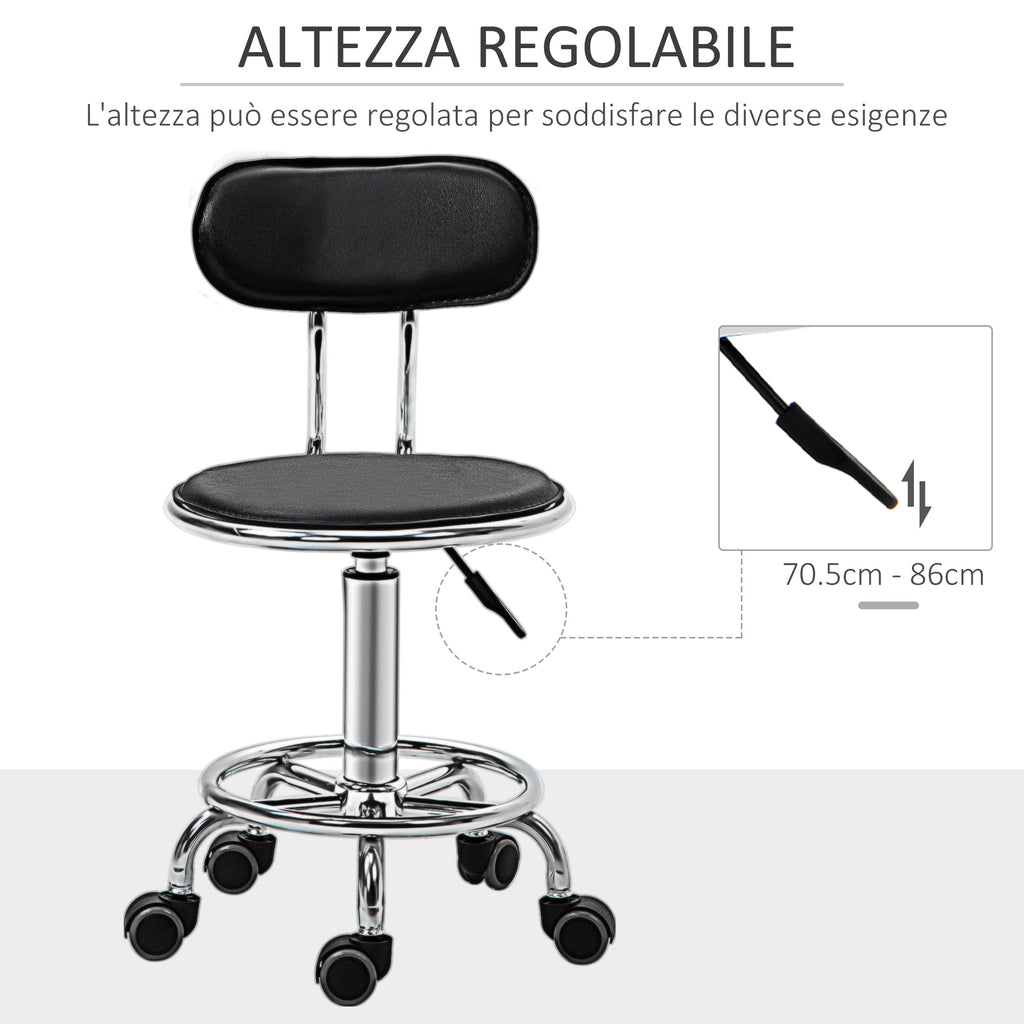 Sgabello per Estetista con 5 Rotelle 38x48x70,5-86 cm Schienale Curvo e Altezza Regolabile Nero