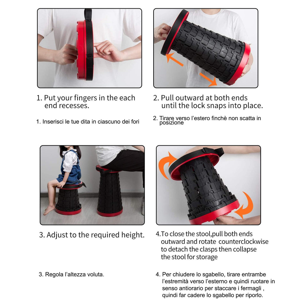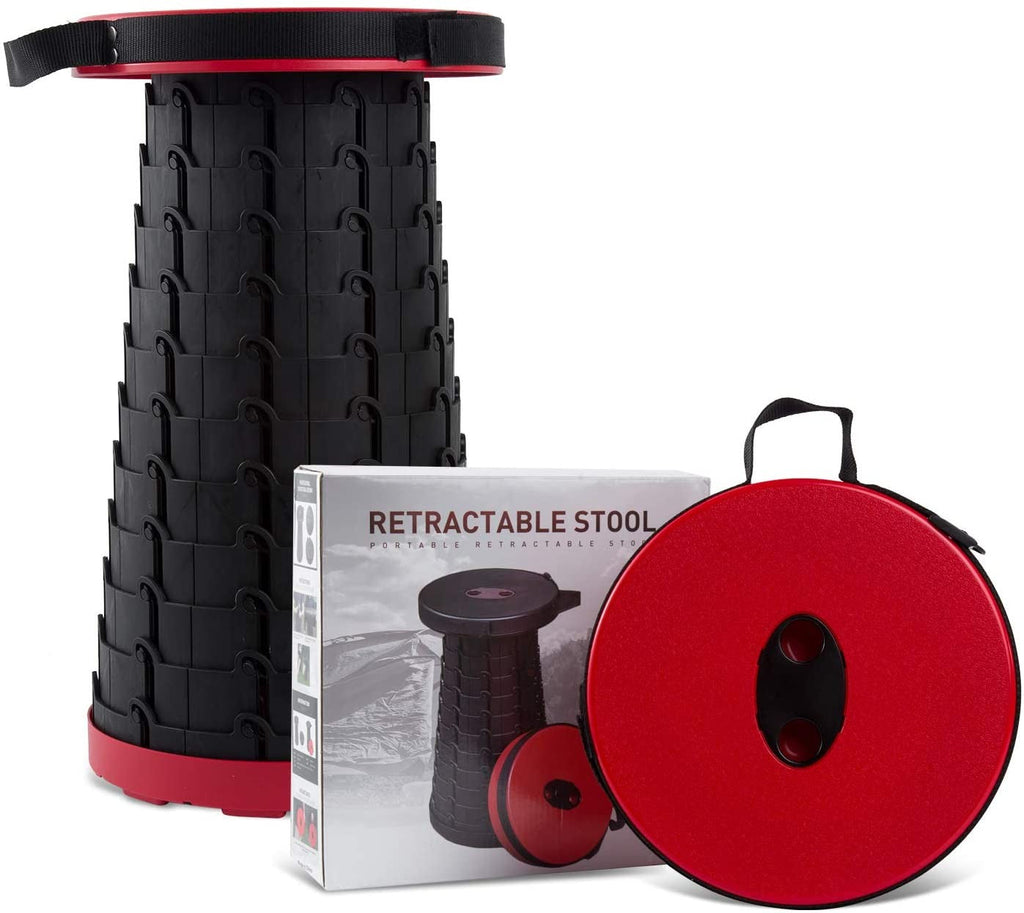Sgabello Poggiapiedi Telescopico Pieghevole Nero e Rosso