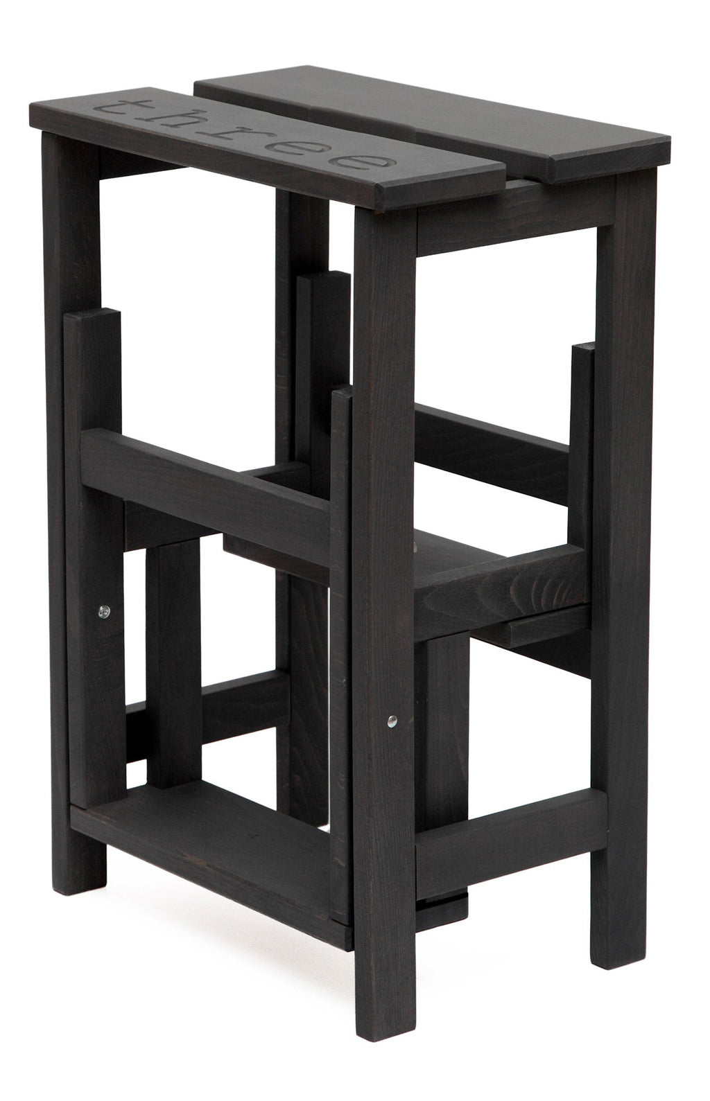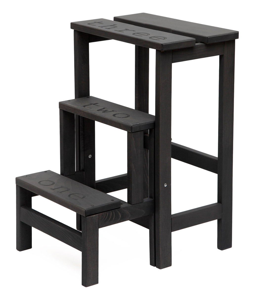 Affidabile, sicuro, indispensabile con un pizzico di eleganza ed allegria. Pratico sgabello in massello di faggio: grazie ai due gradini girevoli può essere utilizzato all'occorrenza come una solida scaletta. Particolarmente utile per accedere agli scaffali più alti di armadi e librerie oppure per sedersi sulla penisola in cucina come su un normale sgabello d'arredo. Sui pianetti in sono incisi in basso rilievo i numeri One Two Three. La colorazione della superfice viene realizzata con colori naturali all'acqua rivestiti con due strati di vernice acrilica opaca: la vernice acrilica garantisce ottima resistenza ai graffi e preserva i colori dalle variazioni cromatiche dovute al tempo ed alla luce. Questa scaletta in legno è testata secondo la normativa europea UNI E.N.131.