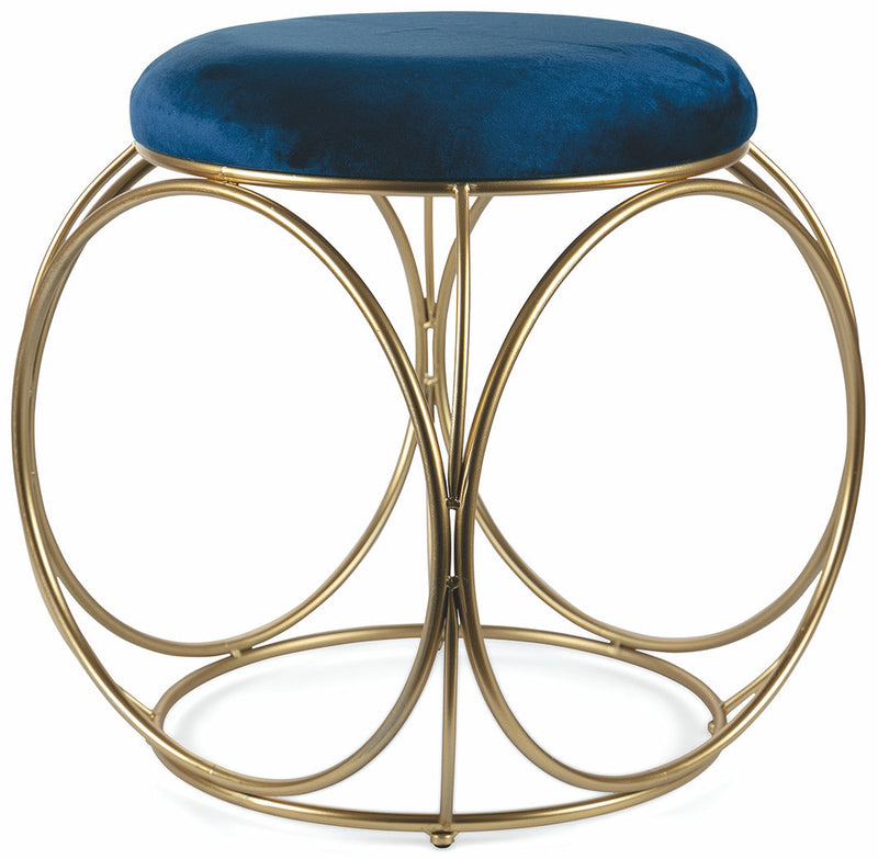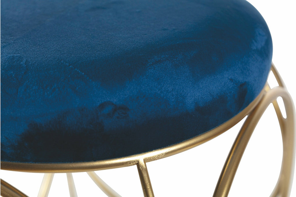 Sgabello Tondo Ø40x46 cm in Ferro e Velluto Soriani Blu