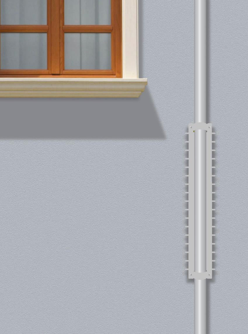 Si installa al tubo o al pluviale mediante i collari (nr.4), viti e dadi in dotazione, rendendo la posa in opera semplicissima, evitando fori a muro o al pluviale che potrebbero causare infiltrazioni. Inoltre, in caso di posa in opera inadeguata, lo si può riposizionare in altra posizione ritenuta più idonea.