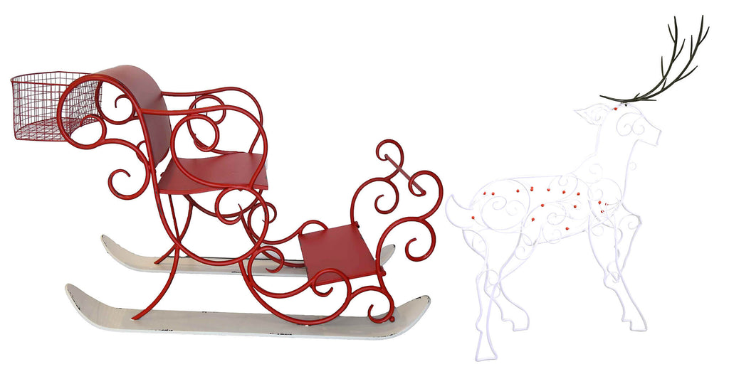Slitta di Babbo Natale con Renna in Metallo Rossa e Bianca