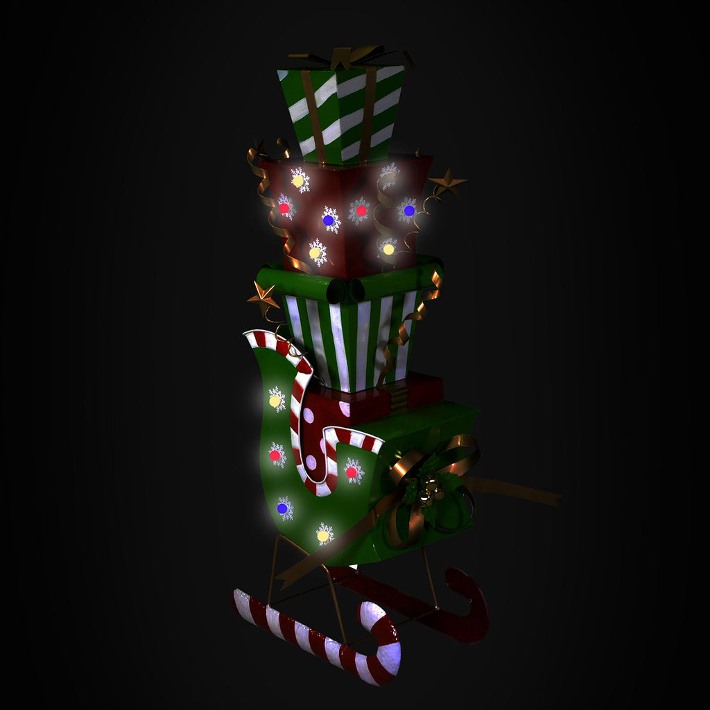 Slitta in Metallo con regali verde cm 26x51xh115