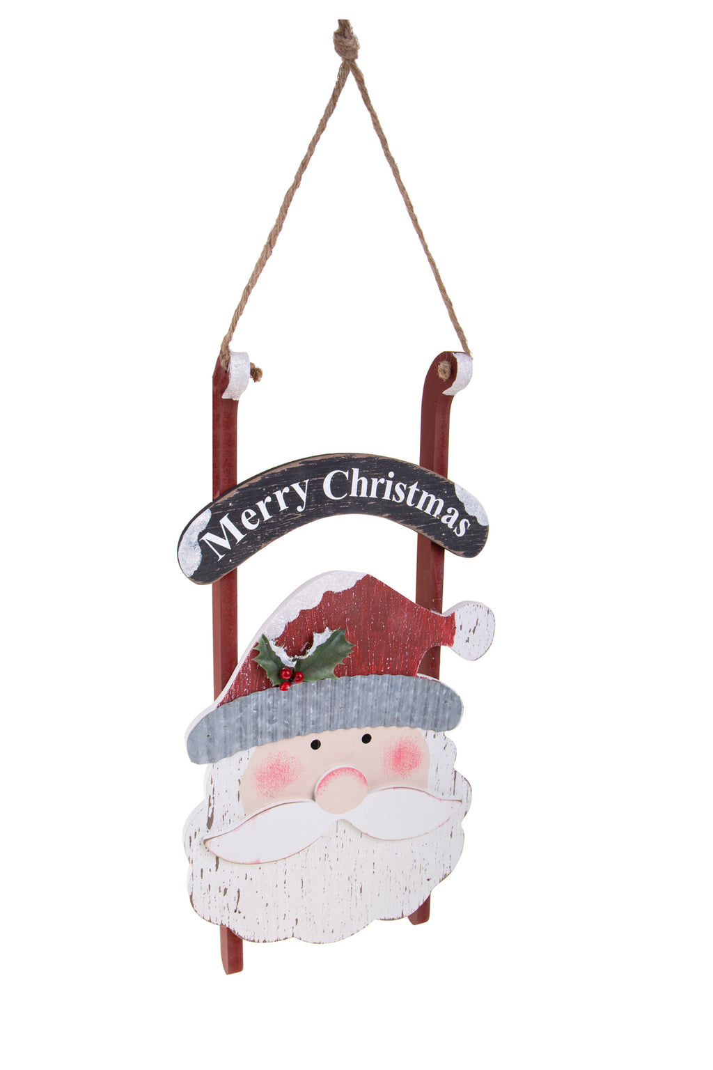 Slittino con Faccia di Babbo Natale H45 cm in Legno