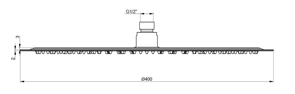 Soffione ultraslim per doccia tondo in acciaio inox con getto a pioggia e diametro da 400 mm. Risparmio idrico, design essenziale, visione tutta italiana. Indicato per docci.