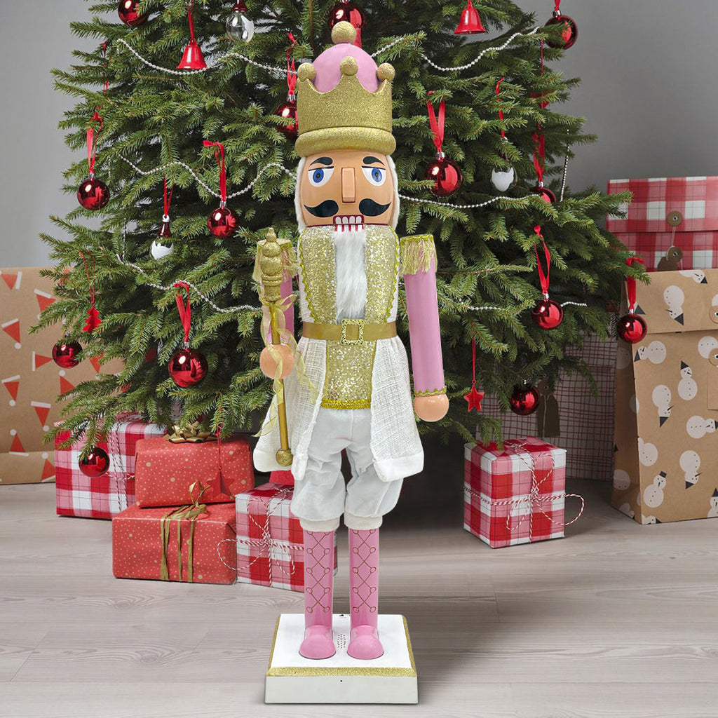 Soldato Schiaccianoci Natalizio H120 cm con Suoni e Movimento Rosa e Oro