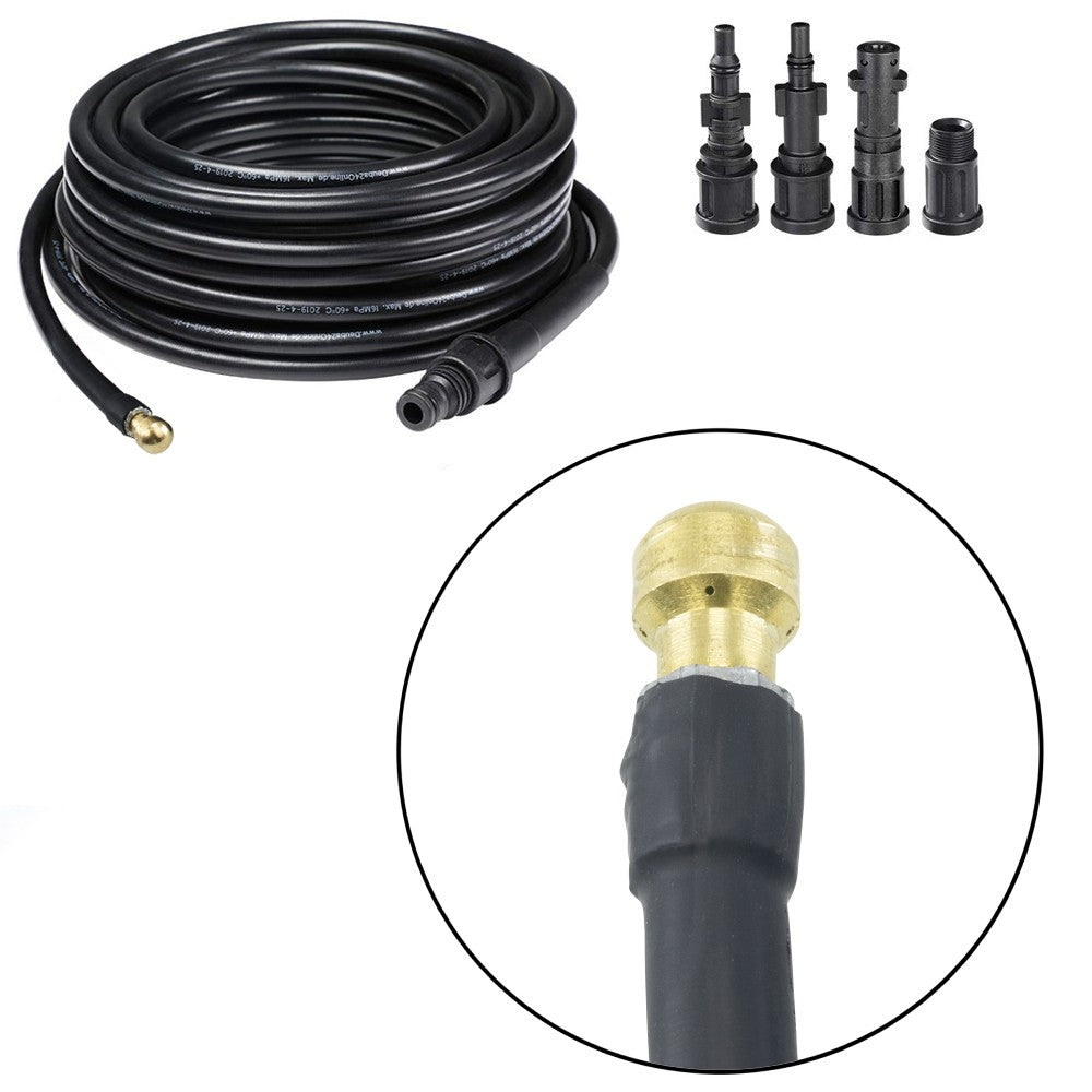 Questa sonda è realizzata per spurgare facilmente fognature, grondaie e servizi igienici intasati senza l'utilizzo di prodotti chimici o detergenti. Grazie ai 4 ugelli in dotazione, si adatta perfettamente alla maggior parte delle idropulitrici disponibili in commercio ed è ideale per la pulizia di pavimentazione esterna , interna o mobili da giardino. Il tubo può essere utilizzato con una temperatura dell'acqua massima di 60° e può resistere ad una pressione massima di 160BAR
