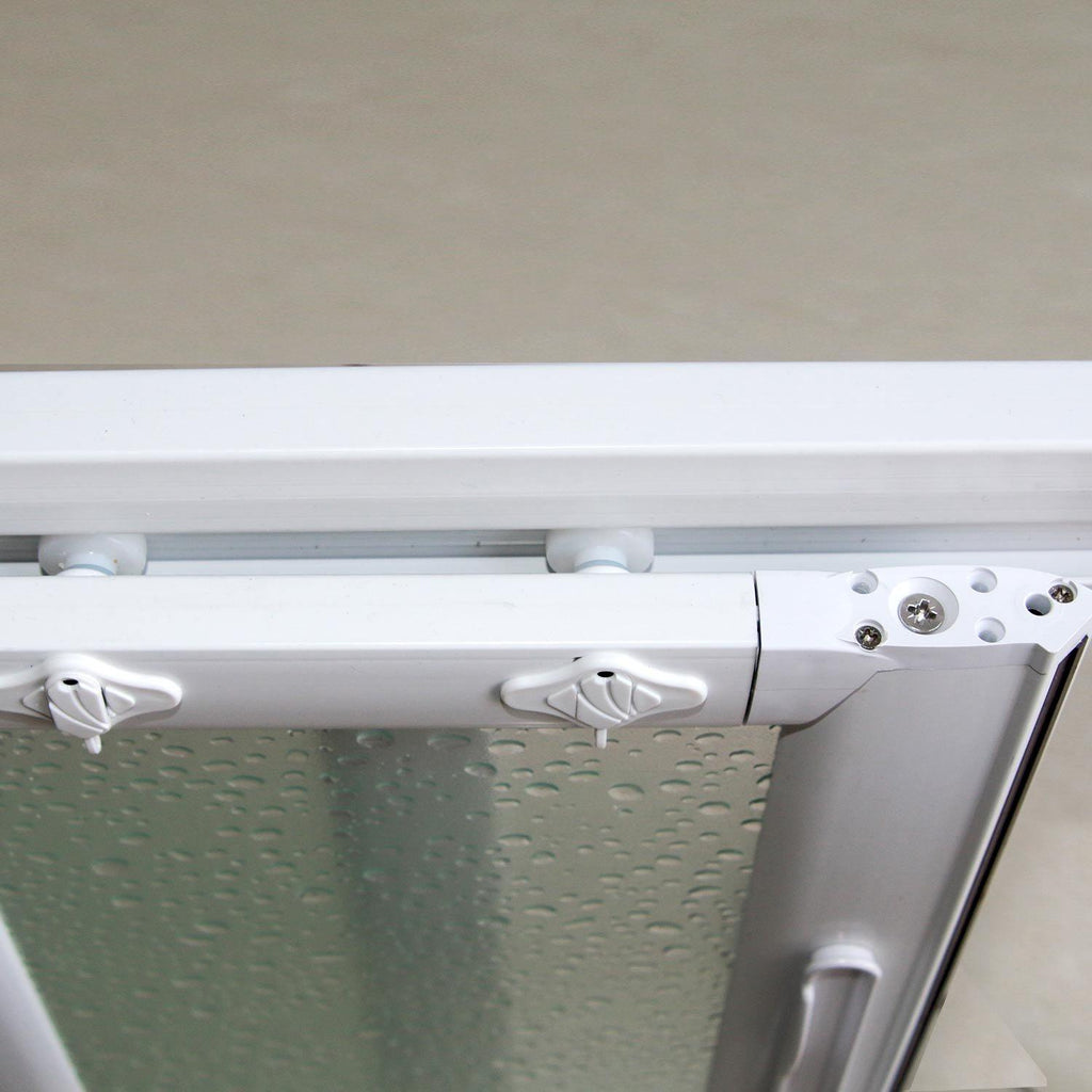Riducibile, dispositivo predisposto su anta scorrevole per regolazione dello scorrevole in caso di falso squadro, reversibile, abbinabile con pareti fisse, dotato di chiusura magnetica, anticalcare, anticorrosione.