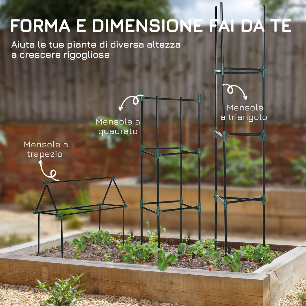 Sostegni 38x38x182 cm a 3 Livelli per Piante Rampicanti Pomodori Frutti e Ortaggi in Acciaio e PP Verde