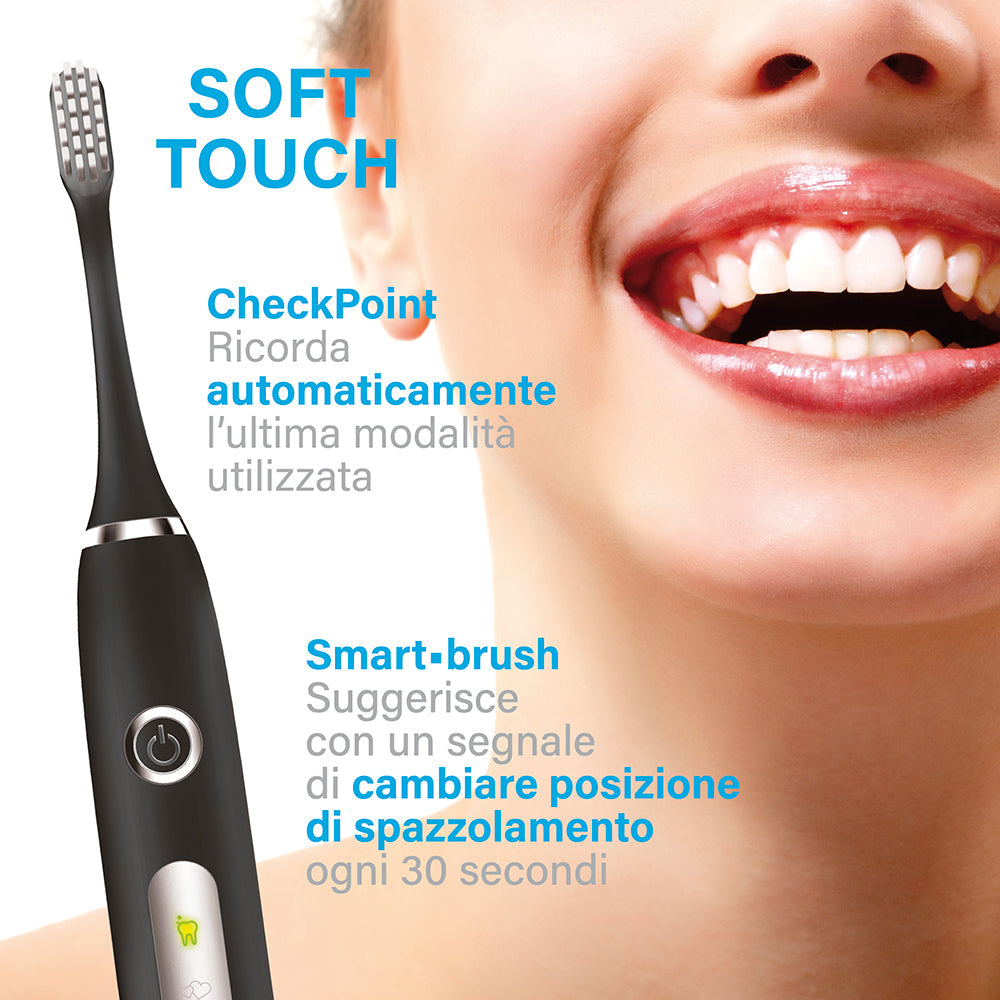 Perché scegliere Identity? Perché l igiene orale viene prima di tutto. Dotato di 4 testine intercambiabili e 4 variazioni massaggianti Identity si prenderà cura della vostra igiene orale restituendovi il vostro sorriso naturale. La funzione check-brush, attraverso un segnale acustico, vi segnalerà quando cambiare posizione di spazzolamento e la funzione check-point vi ricorderà l ultima modalità di utilizzo. La batteria è ricaricabile e garantisce un ciclo di durata di 3 settimane. Cosa aspetti a regalarti un nuovo sorriso?