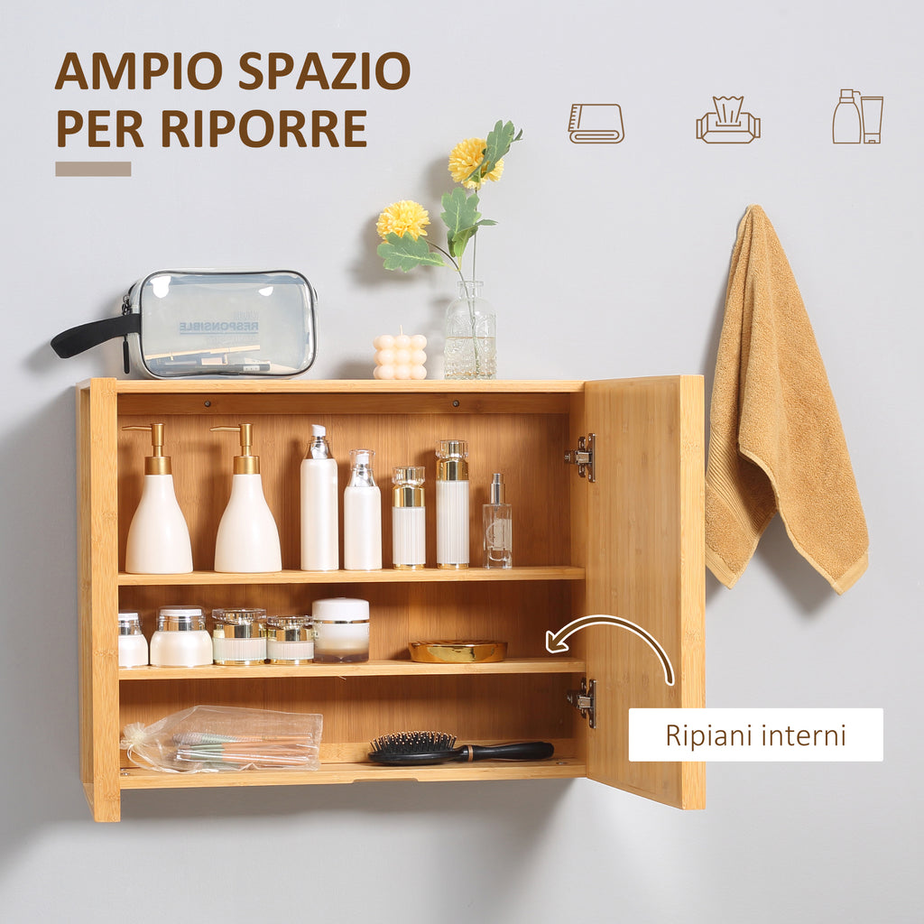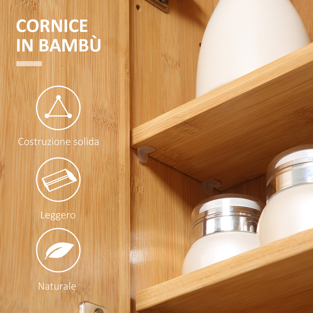 Specchiera Bagno 65,2x14x50 cm 2 Ante 3 Ripiani in Bambù color Legno