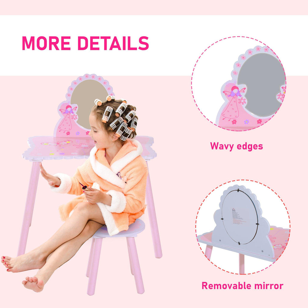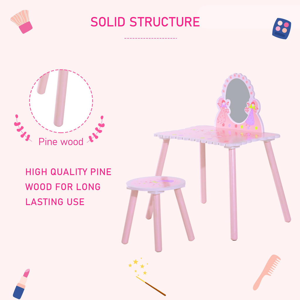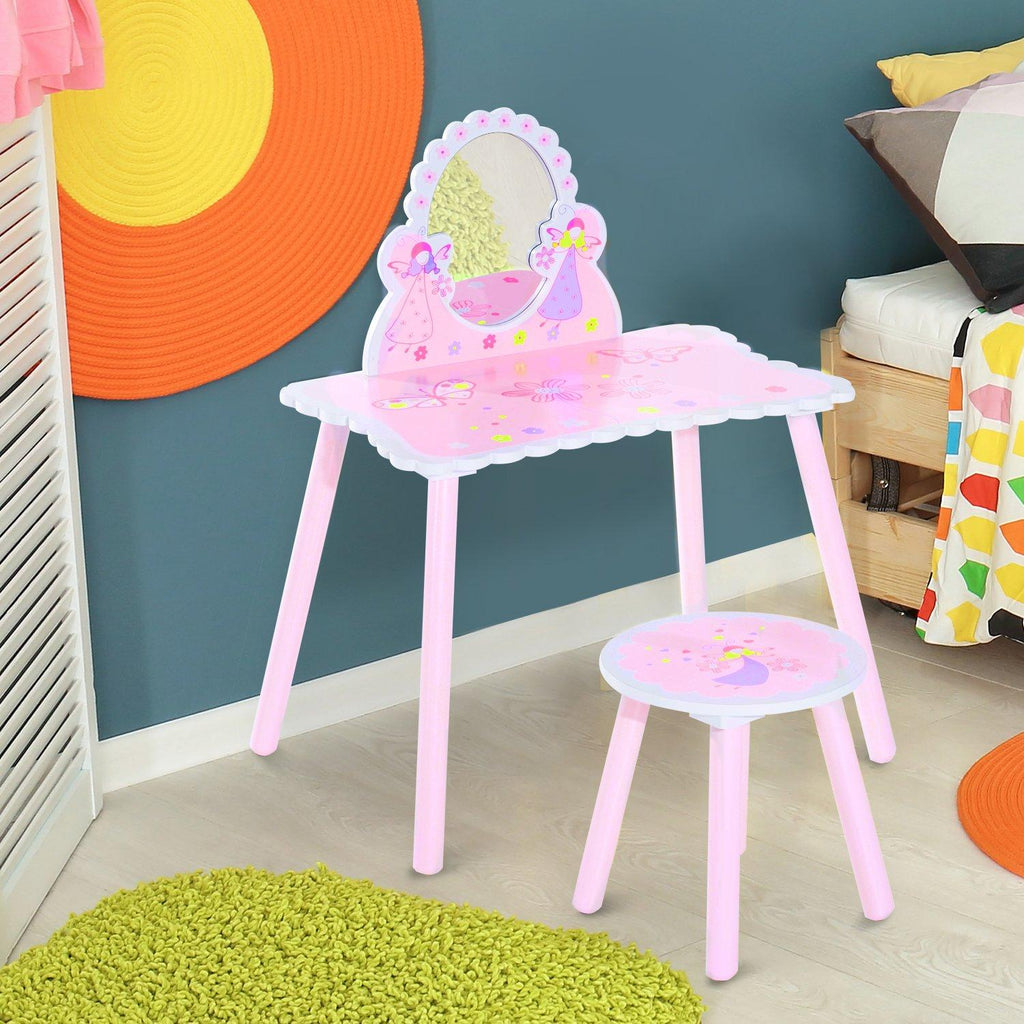 Specchiera Giocattolo per Bambini con Sgabello in Legno Rosa