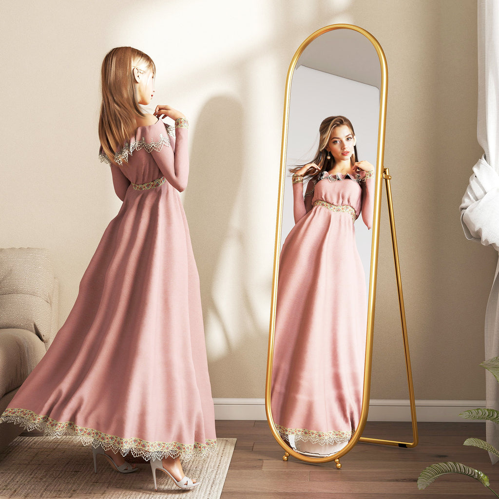 • A FIGURA INTERA: Il nostro specchio verticale offre un visione completa ed è ideale per l'utilizzo in camera da letto o all'ingresso, per assicurarti un controllo totale prima di uscire. La forma ovale aggiunge un tocco elegante alla stanza