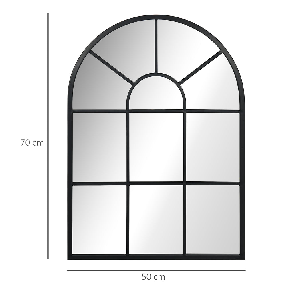 Specchio a Parete e a forma di Arco 70x50 cm in Metallo e Vetro Nero