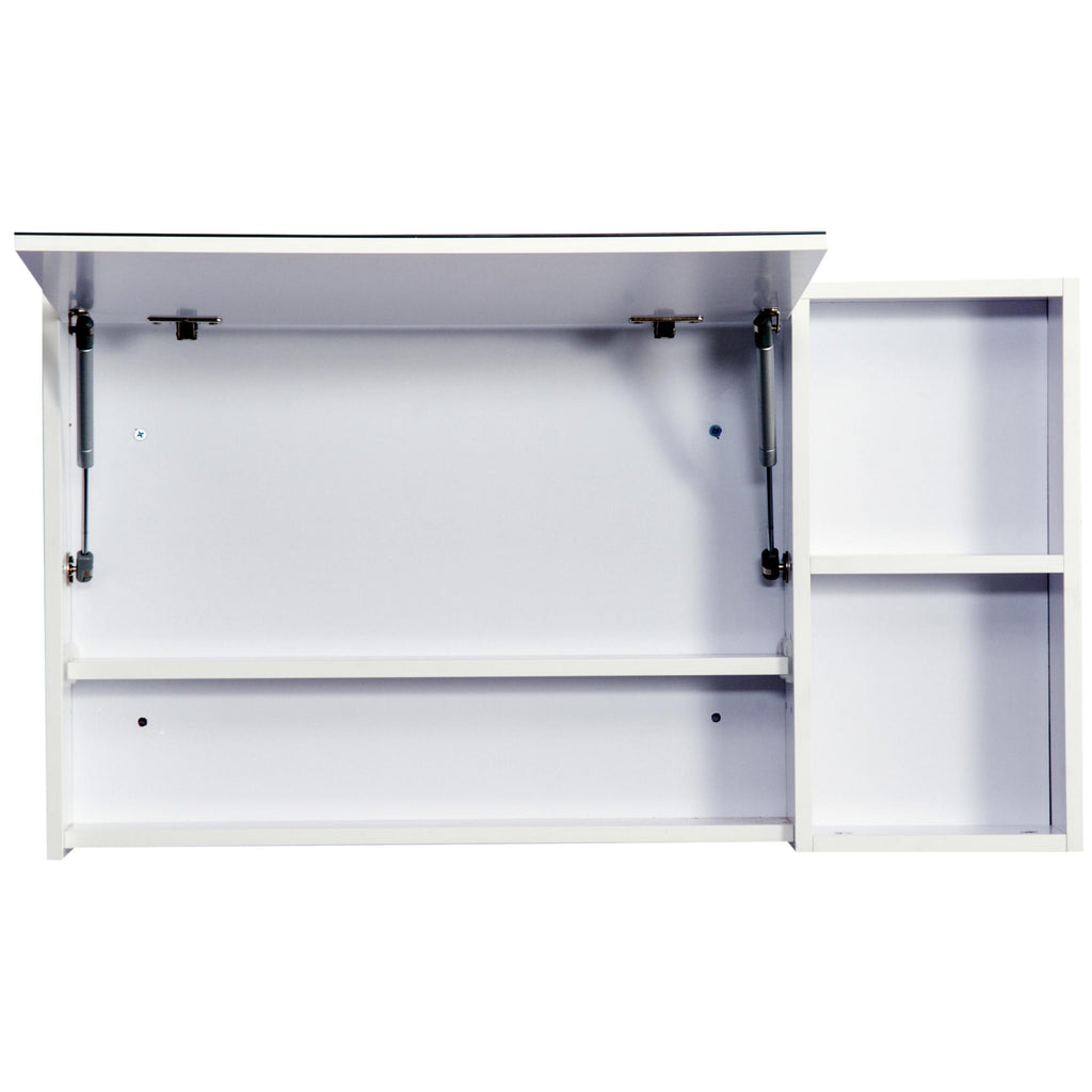 Dispone di 2 ripiani nell'anta dello specchio e 2 ripiani sulla destra per tenere tutto sempre a portata di mano.