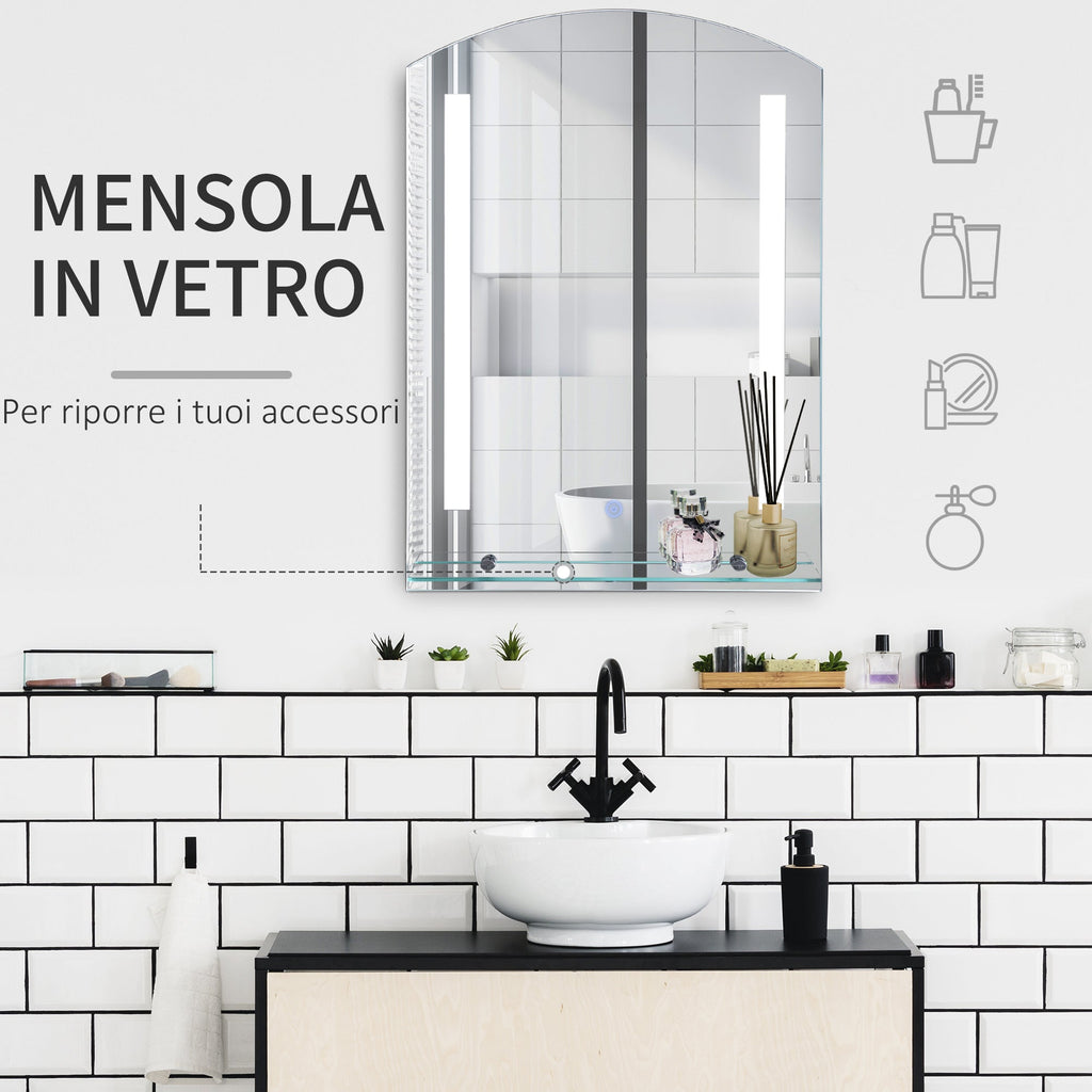 - LUCE LED CON ACCENSIONE TOUCH: Lo specchio per bagno ha un bottone touch frontale per l'accensione della luce LED, luminosa e perfetta per una migliore visibilità