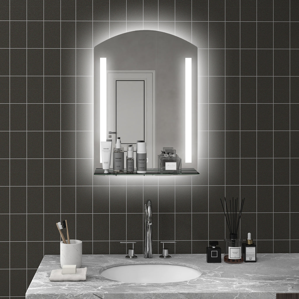 - AMPIO SPAZIO A DISPOSIZIONE: Dotato di un comodo ripiano in vetro, questo specchio per bagno offre spazio sufficiente per mettere in ordine spazzolini, prodotti cosmetici e altri accessori essenziali