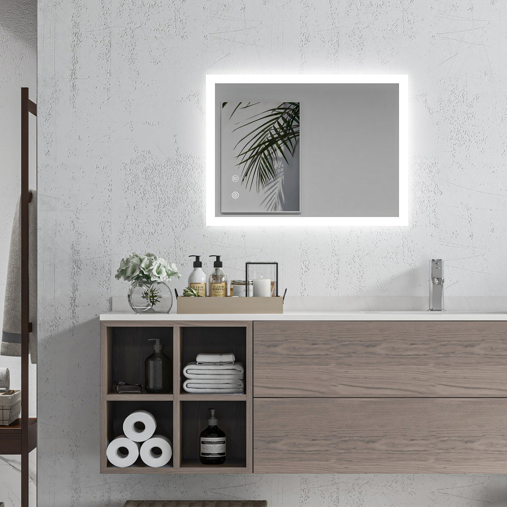 Specchio Bagno con Luci LED 3 Tonalità 70x50 cm Controllo Touch e Design Antiappannamento