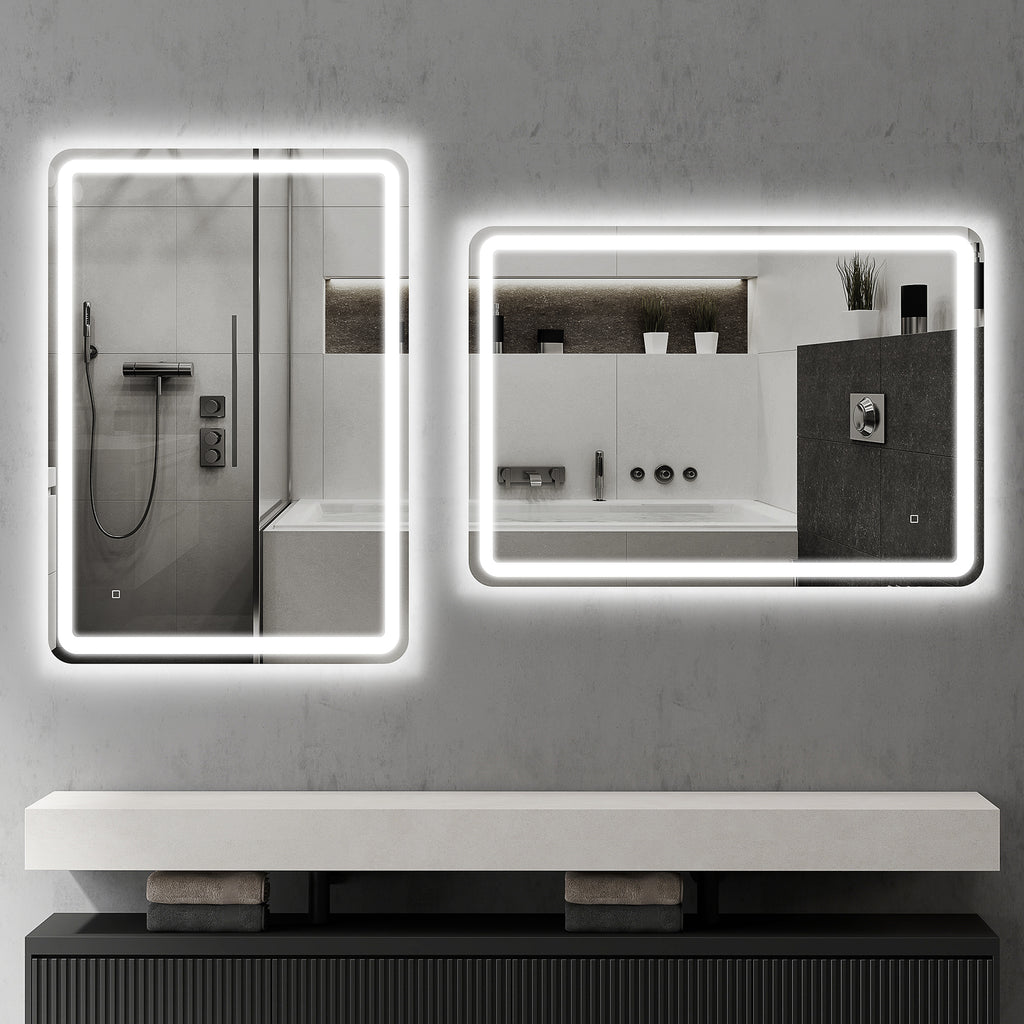 Con lo specchio bagno aggiungi un tocco di design e rendi la tua beauty routine quotidiana più facile. Accendi facilmente l'illuminazione LED integrata con l'interruttore touch, puoi regolarne l'intensità e memorizzare il livello che preferisci. Il sistema defog antiappannamento ti consente di avere una visibilità perfetta anche quando c'è vapore in bagno, così non dovrai perdere tempo a pulirlo. Stile e funzionalità si incontrano nel nostro specchio per bagno!