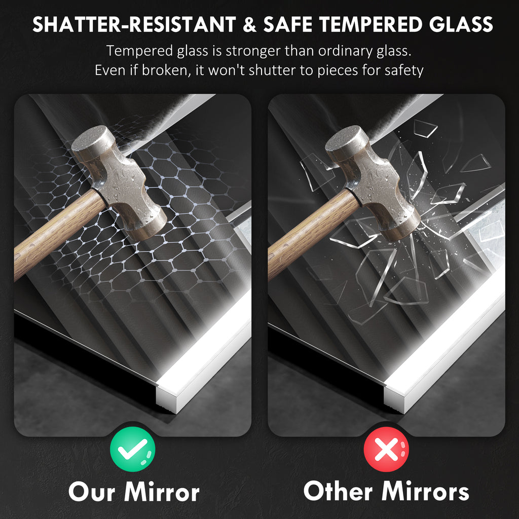 - ANTIAPPANNAMENTO E IMPERMEABILE: Lo strato antiappannamento incorporato assicura che lo specchio bagno con luce rimanga sempre pulito dopo ogni doccia, mentre l'attestato IP44 garantisce resistenza all'acqua e alla polvere (ideale per ambienti umidi)