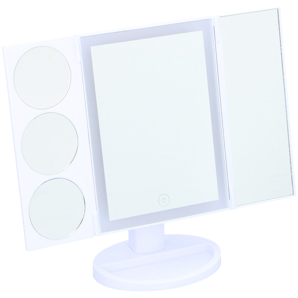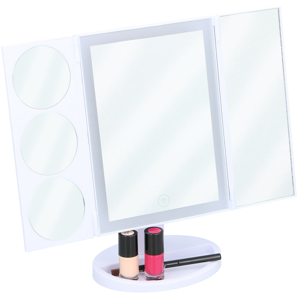 Lo specchio da chiuso è un oggetto che occupa poco spazio, ma una volta aperto ed accesa la luce mediante il tasto touch posto nella parte inferiore, il tuo viso verrà illuminato da 36 luci LED.