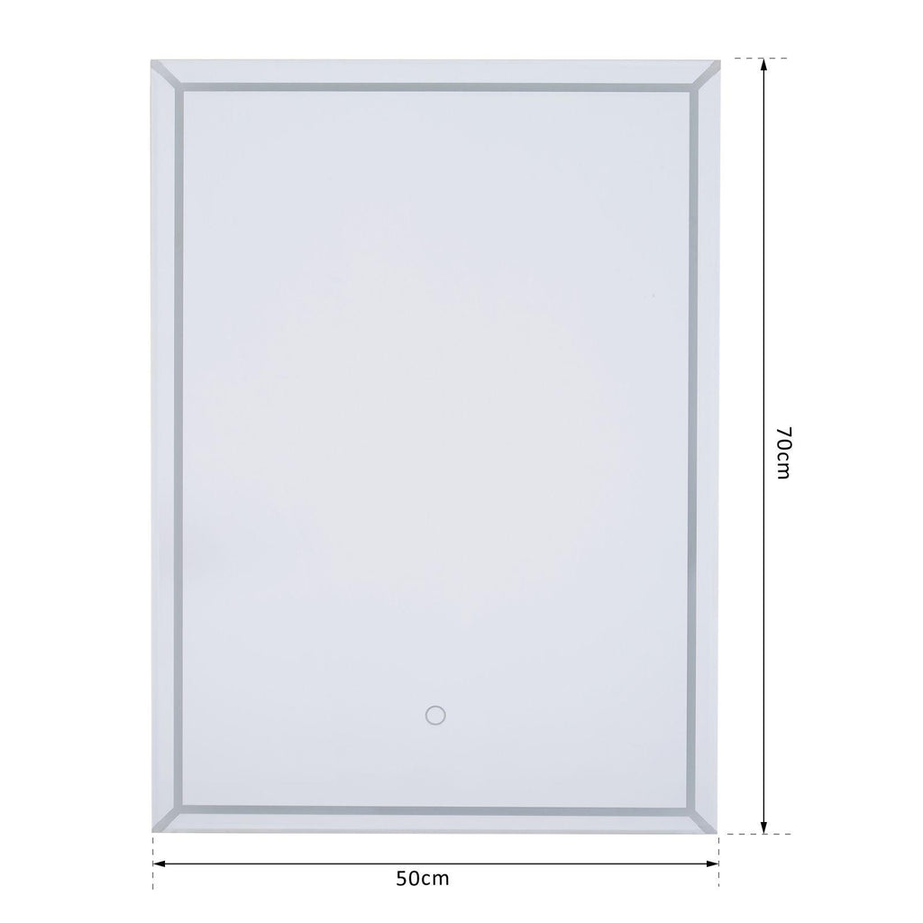 Specchio da Bagno con Illuminazione a LED e Interruttore Touch in Vetro e Alluminio 50x3x70 cm