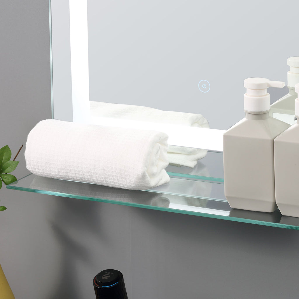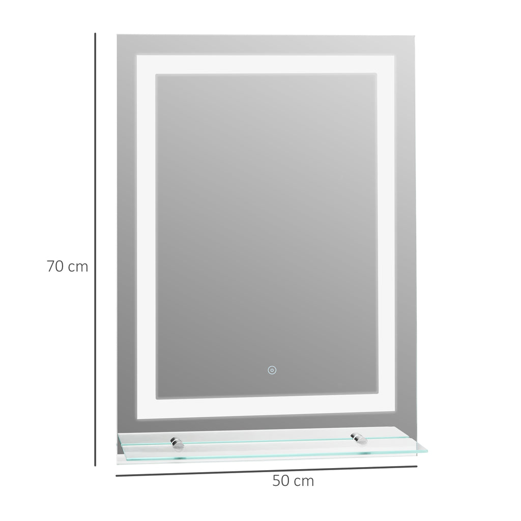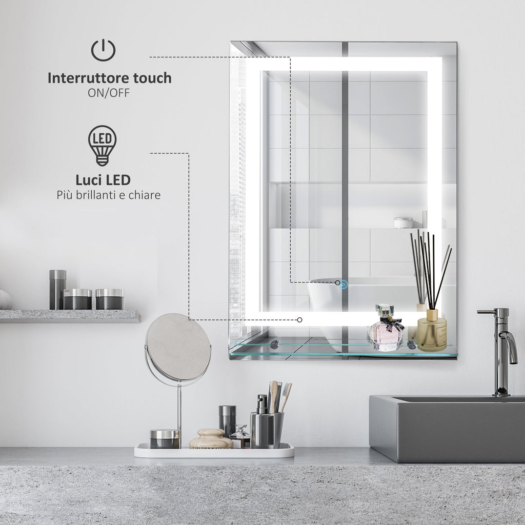 Specchio da Bagno con LED e Mensola in Vetro 70x50 cm