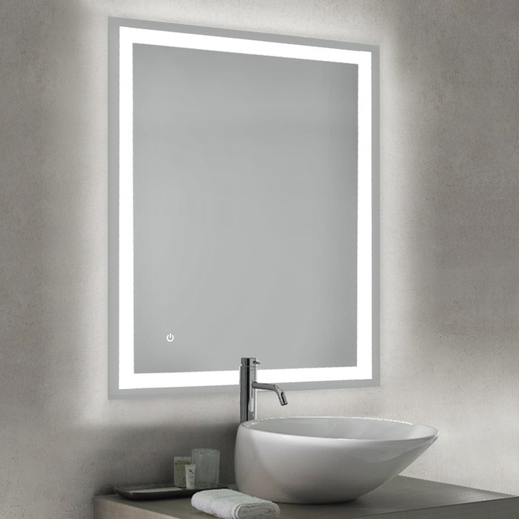- Specchio da bagno rettangolare con luce frontale e retroilluminazione con interruttore tattile integrato (4000K).